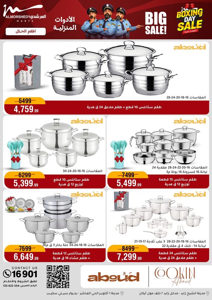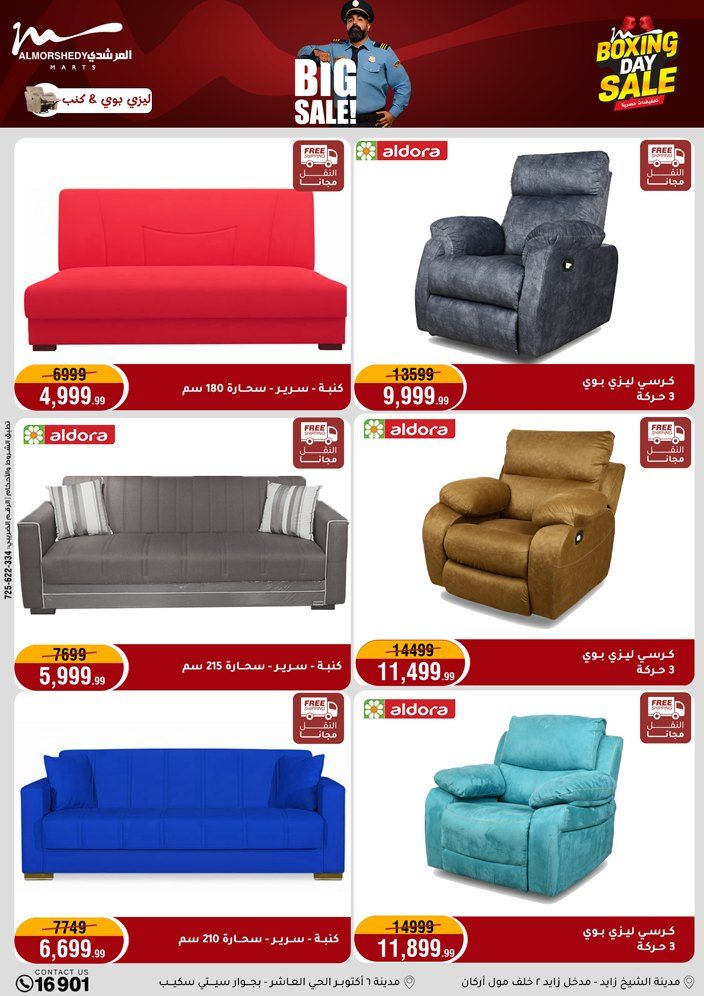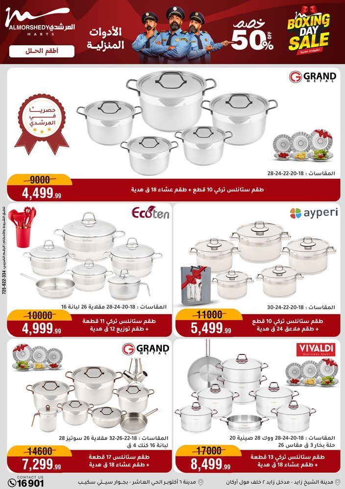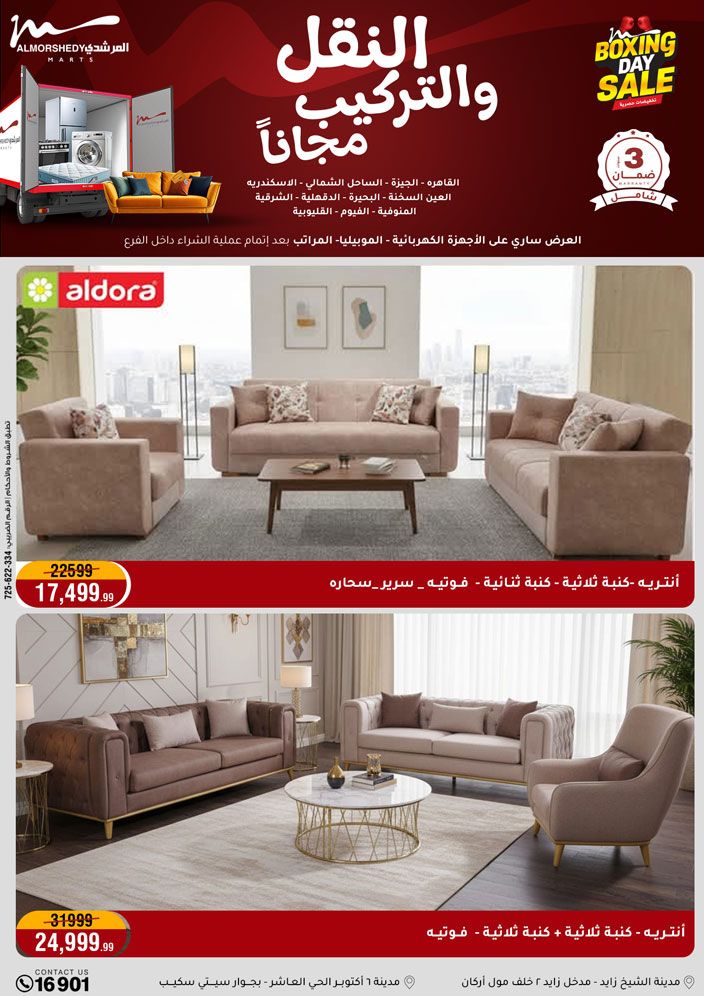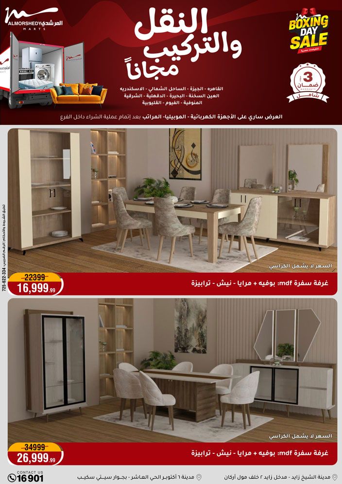 عروض جديدة من أسواق المرشدي مع اكبر مهرجان للتخفيضات في مصر خصومات حتى 70% وقسط براحتك بدون فوائد بأسعار العروض المخفضة على 12 شهر لحاملي بطاقة ائتمان CIB أو قسط براحتك مع VALU بدون مقدم حتى 60 شهر أو بدون مقدم وبدون فوائد مع نظام هاتريك وكمان النقل مجاني للقاهرة والجيزة والقليوبية على قسم الأجهزة الكهربائية والموبيليا والمراتب ( تطبق شروط المكان ) خصومات على جميع الأقسام أدوات منزلية – اجهزة كهربائية – مفروشات – موبيليا – نجف – سجاد – مراتب – ملابس رجالي وحريمي وأطفالي ومستلزمات ولعب الأطفال وجاليري وأقسام تانية كتير استمتع بالتسوق في أسواق المرشدي مع أكتر من 12 قسم و أكثر من 10,000 منتج يعني كل اللي بتحلم بيه عند المرشدي هتلاقيه