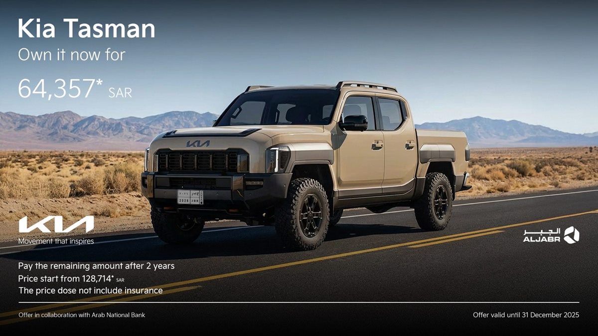 - يقدم لكم كيا الجبر عرض مميز على سيارة تاسمان 2026 ادفع ٪50 الآن والباقي بعد سنتين