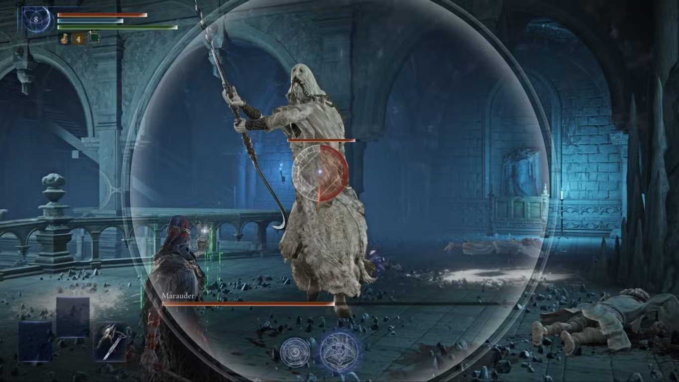 ورغم قوة Marauder وقدرته على تنفيذ ضربات متتالية قد تربك اللاعب إلا أن مواجهة هذا العدو تصبح أسهل بكثير إذا لم يقم اللاعب بالقضاء على Glintstone Sorcerers في الطوابق السابقة إذ أن هؤلاء السحرة الذين قد بدوا سابقًا مصدر تهديد يتحولون هنا إلى عنصر مساعد غير مباشر في القتال لأنهم يهاجمون Marauder والجنود المحيطين به دون تمييز مما يخلق فوضى في ساحة المعركة ويجبر Marauder على توزيع انتباهه بين اللاعب وبين السحرة وهذا الارتباك يمنح اللاعب فرصًا واسعة لمهاجمة العدو من الخلف أو من المسافات الآمنة.