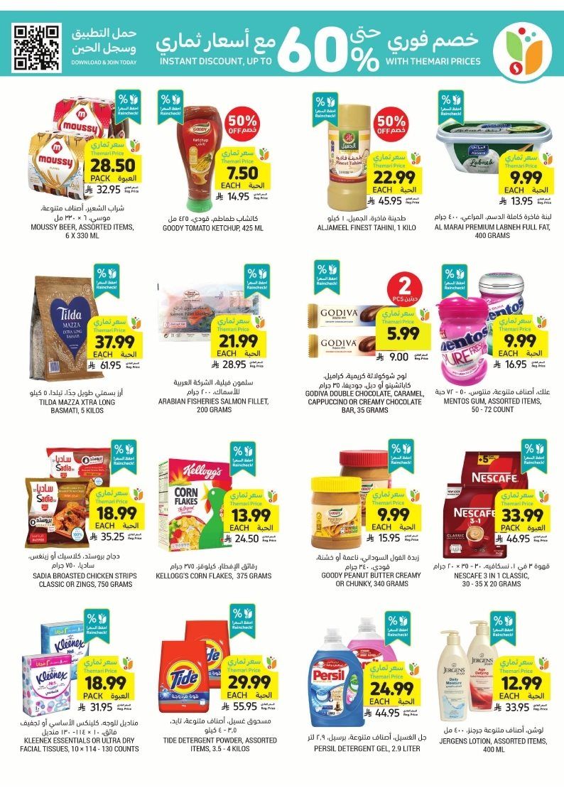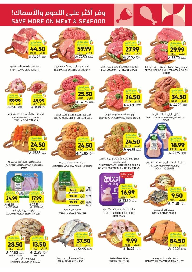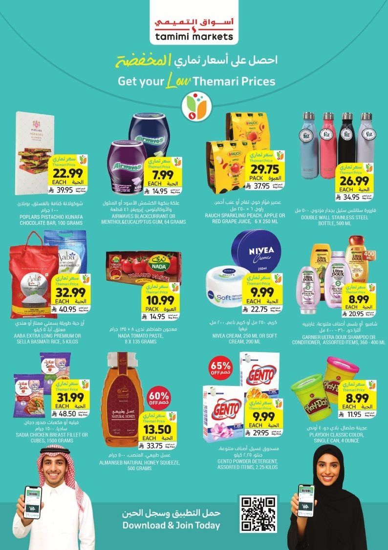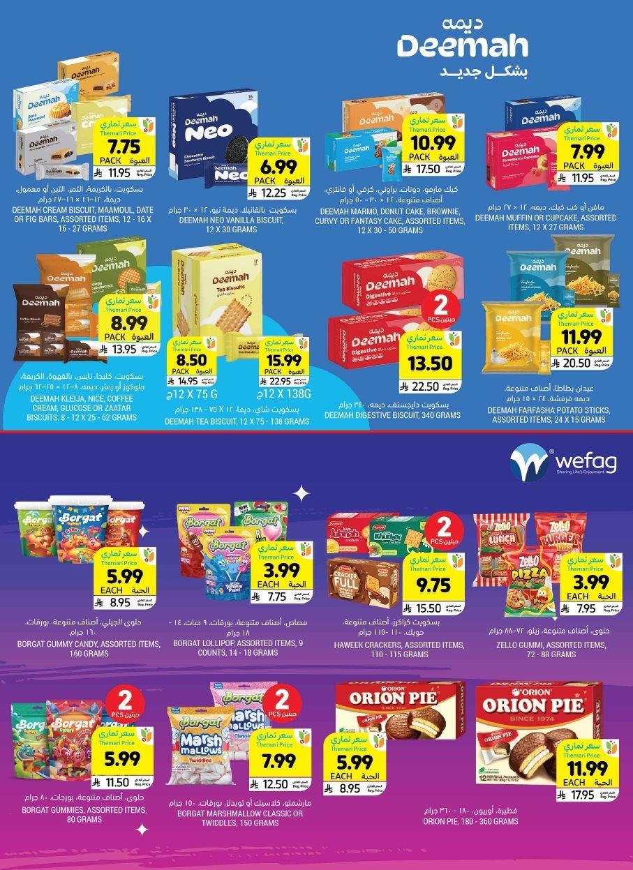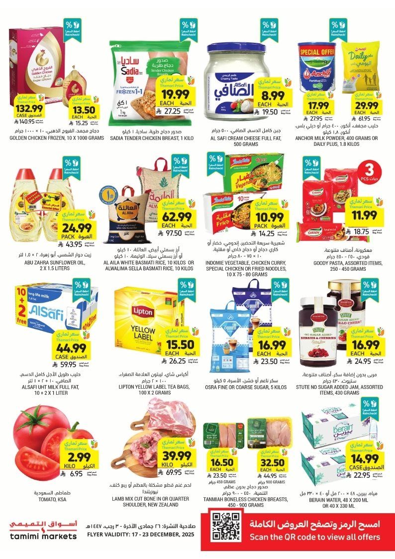 عروض التميمي الأسبوعية الأربعاء 17-12-2025 تشمل القرنبيط والكوسا والبصل والأناناس والكمثرى وقطع لحم الجمل وشرائح صدور المدخنة وسمك الوقار والحليب الطازج والجبنة ثم تمتد إلى الأجهزة مثل قدر طهي متعدد الطبقات وخلاط عصائر ومجفف كهربائي وسخان طعام وصانعة بانكيك وغيرها من المنتجات باقل الاسعار