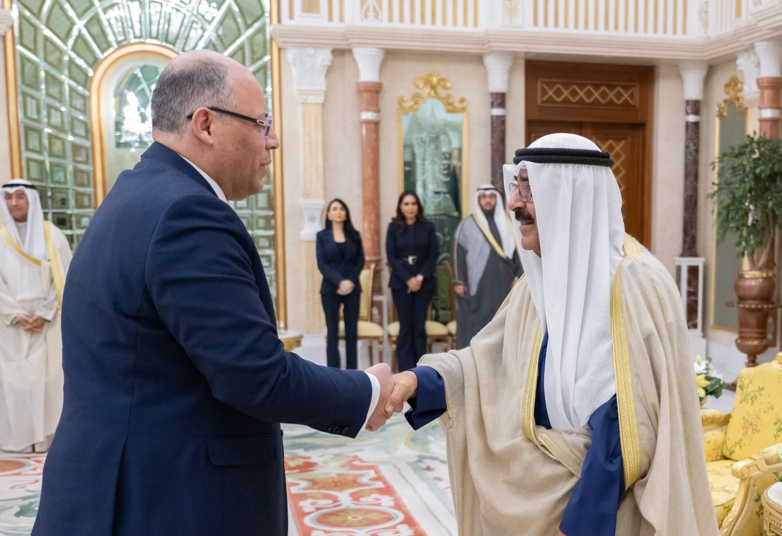 قدّم السفير محمد جابر أبو الوفا، سفير جمهورية مصر العربية لدى دولة الكويت، أوراق اعتماده إلى صاحب السمو الشيخ مشعل الأحمد الجابر الصباح أمير دولة الكويت، خلال مراسم رسمية أقيمت في قصر بيان.وقد نقل السفير أبو الوفا إلى سمو أمير الكويت تحيات السيد الرئيس عبد الفتاح السيسي، رئيس الجمهورية، وتمنيات سيادته لحكومة وشعب الكويت الشقيق بدوام التقدم والازدهار، معرباً عن تطلع مصر للبناء على ما تشهده علاقات البلدين من تطور نوعي فى كافة المجالات عقب الزيارات المتبادلة رفيعة المستوى بين البلدين وأبرزها زيارة السيد رئيس الجمهورية الناجحة للكويت فى أبريل ٢٠٢٥، وزيارة سمو أمير الكويت لمصر فى أبريل ٢٠٢٤، مؤكدا أن العلاقات المصرية الكويتية تجسد روح التعاون العربي القائم على الاحترام المتبادل المرتكز على علاقات البلدين التاريخية.ومن جانبه، طلب سمو أمير الكويت نقل تحياته الى السيد رئيس الجمهورية، وتمنياته لمصر وشعبها بدوام الاستقرار والمزيد من التقدم والازدهار، وأكد سموه على عمق العلاقات الأخوية بين البلدين، وحرص الكويت على دفعها إلى آفاق أرحب، وأهمية استمرار التشاور والتنسيق الثنائي في مختلف القضايا ذات الاهتمام المشترك، إضافة إلى تعزيز الشراكة والتعاون بما يخدم مصالح البلدين ويحقق تطلعاتهما نحو مزيد من التكامل.