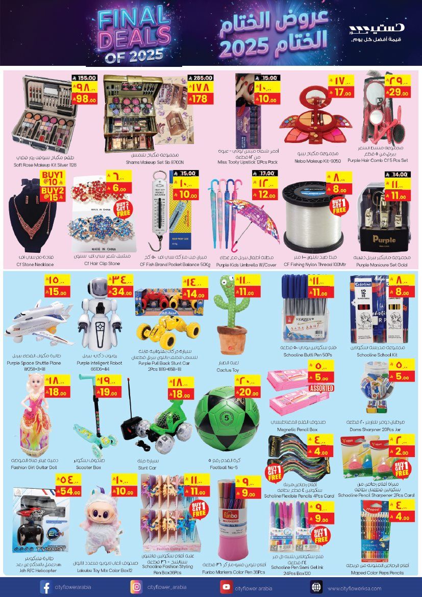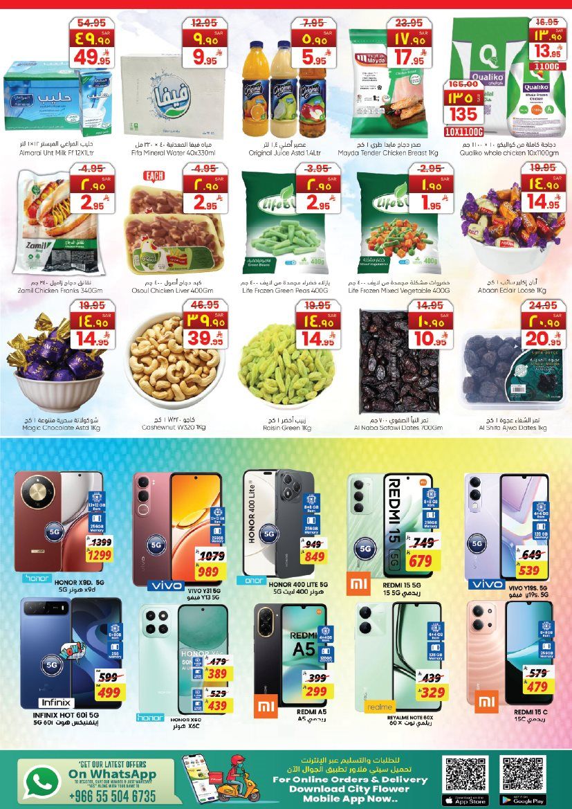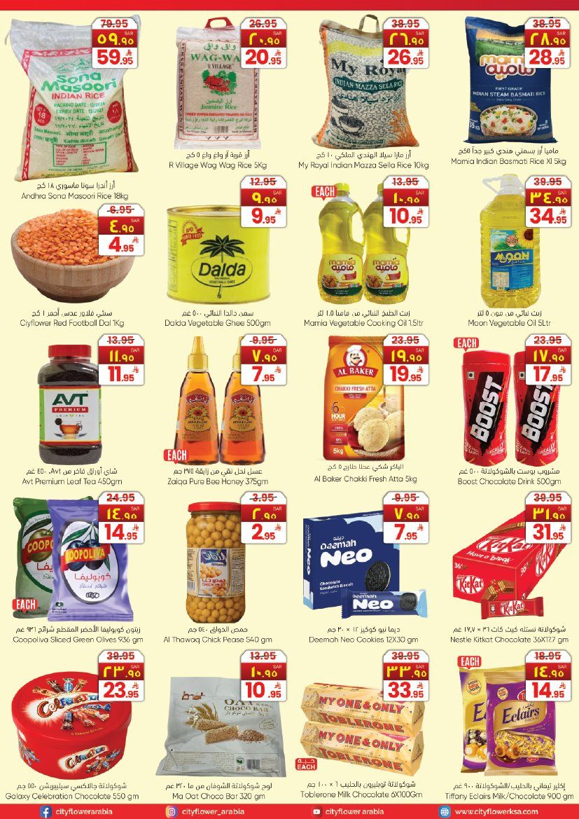 عروض سيتي فلور الجبيل الأربعاء 26-12-1447هـ تبدأ بالأغذية و تشمل القرنبيط الأخضر والفلفل والبطاطا الصغيرة والتوت الأحمر والجوافة والمكسرات والعسل الطبيعي والدبس ثم تمتد إلى الأجهزة مثل خلاط يدوي وقدر بخار كهربائي وصانعة شطائر وميزان مطبخ وسخان أطباق وغيرها من المنتجات باسعار مميزة .