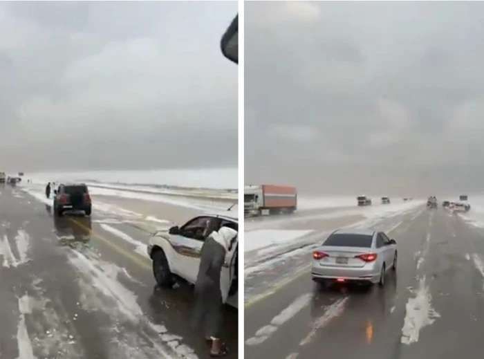 وثق مقطع فيديو نادر لتساقط الثلوج على محافظة الأحساء، في مشهد غير معتاد على هذه المنطقة الصحراوية، حيث غطت الثلوج الطرق السريعة وتوقّف بعض قائدي السيارات للاستمتاع بالأجواء البيضاء.