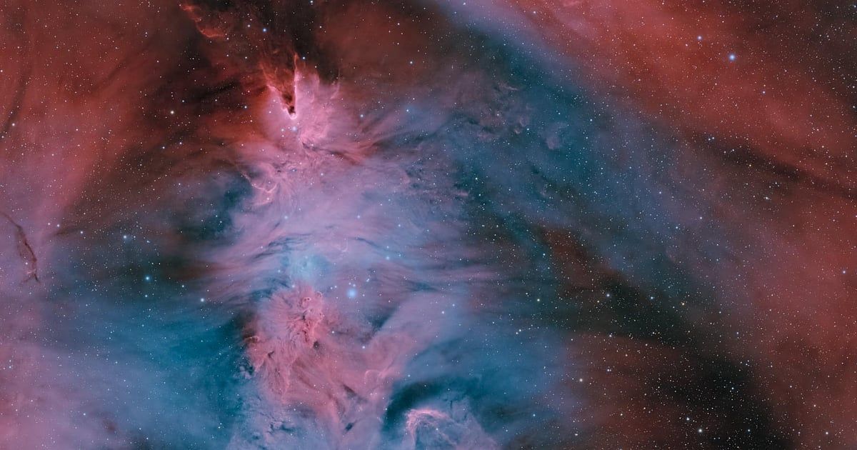 وبيّن أن اللونين الأحمر والزهري في الصورة ناتجان عن تأيّن غاز الهيدروجين، في حين يعود اللون الأزرق إلى تأيّن غاز الأكسجين. كما تُظهر الصورة معالم فلكية أخرى، من بينها سُدم مظلمة، وهي كتل عملاقة من الغاز والغبار تحجب الضوء خلفها، فتبدو على هيئة بقع سوداء.