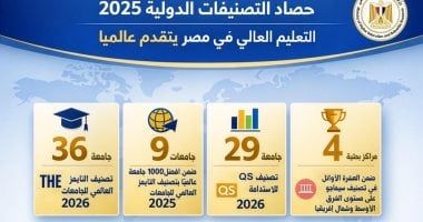 تقدم ملموس للجامعات المصرية في كبرى التصنيفات العالميةحيث حققت الجامعات المصرية خلال هذا العام تقدمًا ملحوظًا في مختلف التصنيفات الدولية المرموقة، بما يعكس تطور منظومة التعليم العالي والبحث العلمي، والجهود المؤسسية المبذولة لتحسين جودة التعليم، وتعزيز الإنتاج البحثي، ورفع القدرة التنافسية للجامعات المصرية على المستويين الإقليمي والدولي، وذلك في إطار تنفيذ أهداف رؤية مصر للتنمية المستدامة 2030، وتوجيهات القيادة السياسية بالارتقاء بترتيب الجامعات المصرية والمؤسسات البحثية وتعزيز تنافسيتها عالميًا، لدعم توجه الدولة لاستثمار مكانة مصر كوجهة تعليمية إقليميًا ودوليًا، وتعزيز حضورها على خريطة المعرفة العالمية.