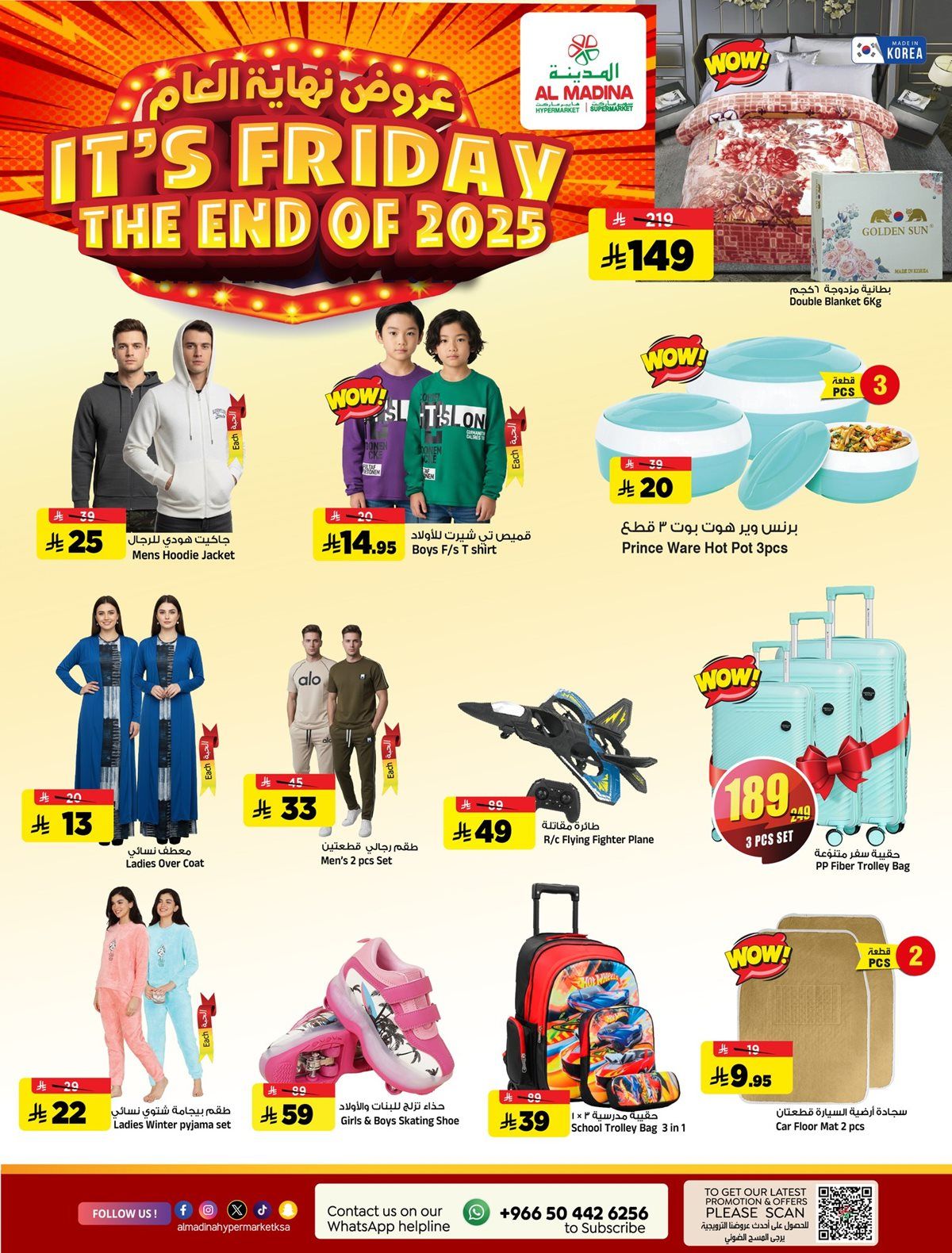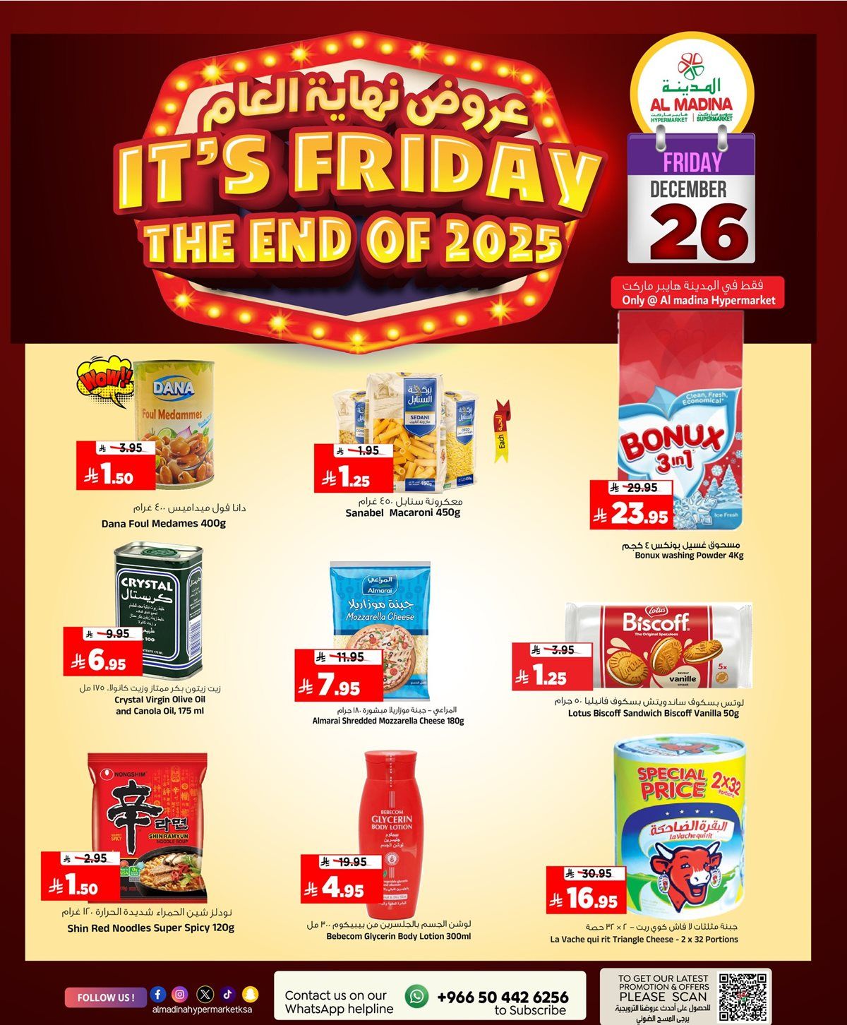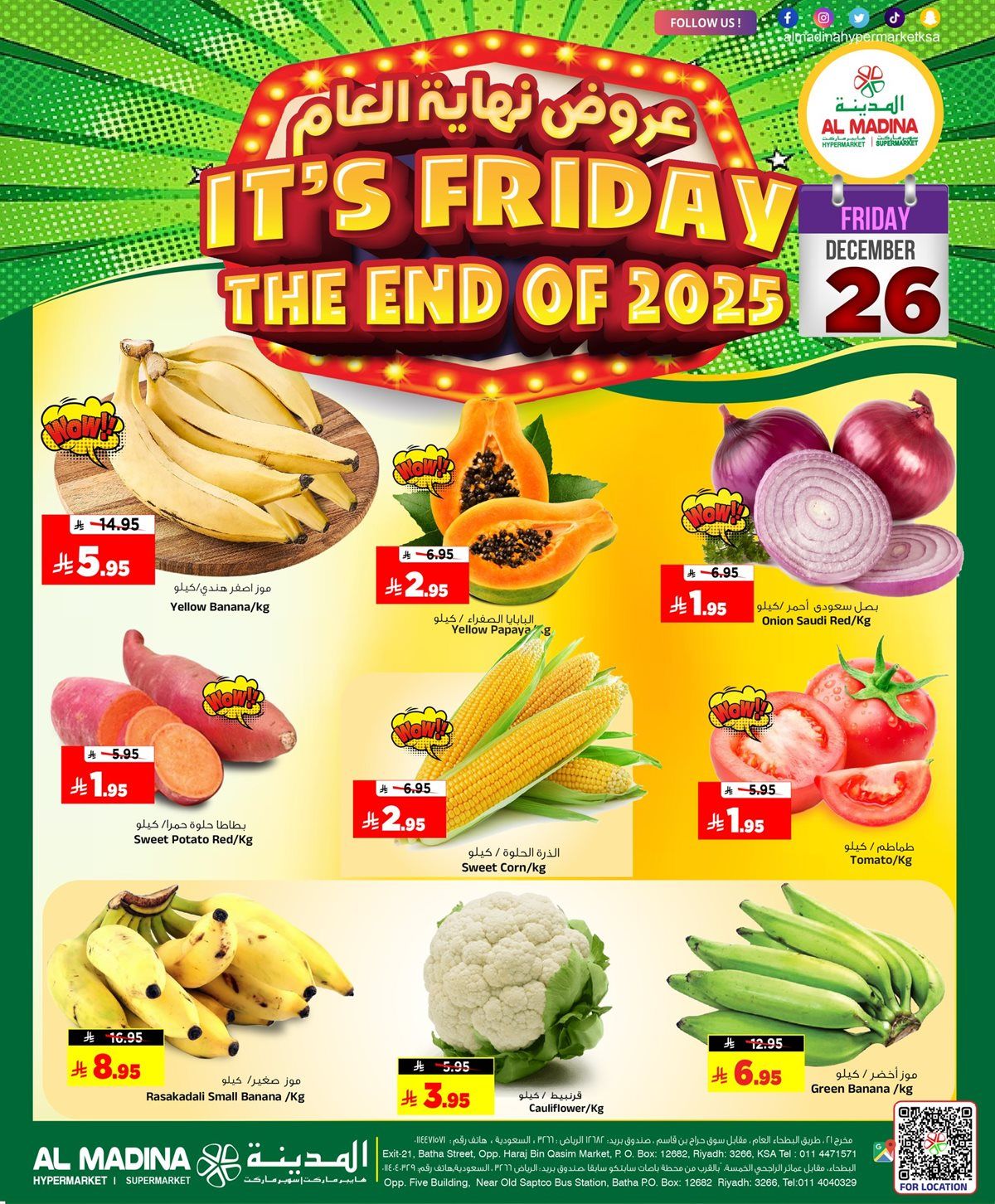 عروض المدينة هايبر ماركت الويكند بتقدم ليكم اليوم الجمعة 6 رجب 1447هـ مجموعة من المنتجات و تشمل أجنحة دجاج ساديا وبيض أبيض طازج في طبقات مرتبة ومسحوق عصير تانج بنكهات البرتقال والمانجو إلى جانب شاي الكرك بالحبهان من الخير وصلصة كاتشب العلالي وزجاجة عطرية من ديفو رول أون بالإضافة إلى الخضار والفواكه