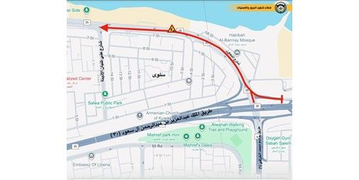 أعلنت الإدارة العامة للمرور عن إغلاق حارة ونصف على شارع التعاون للقادم من طريق جاسم الخرافي (الدائري السادس) وطريق الملك عبدالعزيز بن عبدالرحمن آل سعود (الفحيحيل) حتى تقاطع شارع علي ثنيان الأذينة باتجاه دوار البدع.