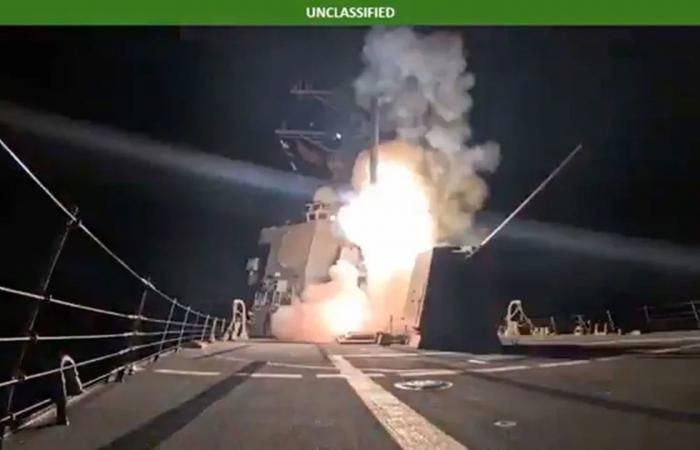ونشرت وزارة الدفاع الأمريكية فيديو لإطلاق صاروخ مصحوبًا بإعلان ترامب عن شن ضربة ضد "داعش".