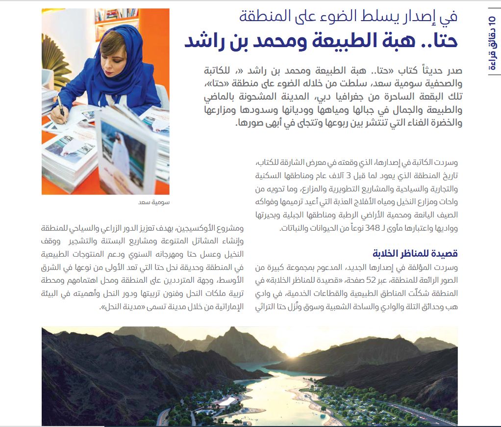 يكثر الاقبال علي كتاب حتا هبه الطبيعة ومحمد بن راشد للكاتبة سومية سعد