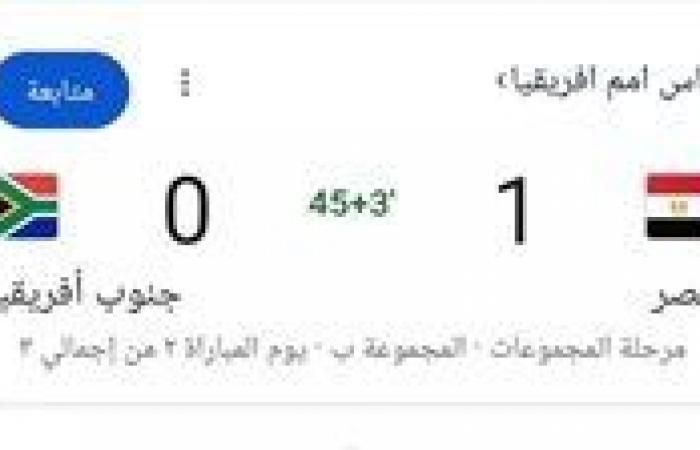 تتجه أنظار الجماهير المصرية والأفريقية في هذه اللحظات إلى الشوط الثاني والأخير من مباراة منتخب مصر أمام منتخب جنوب أفريقيا، بعدما دخل اللقاء مراحله الحاسمة، وسط تفوق المنتخب المصري في النتيجة، وسعيه لحسم المواجهة والخروج بالنقاط كاملة في إطار منافسات بطولة كأس الأمم الأفريقية.