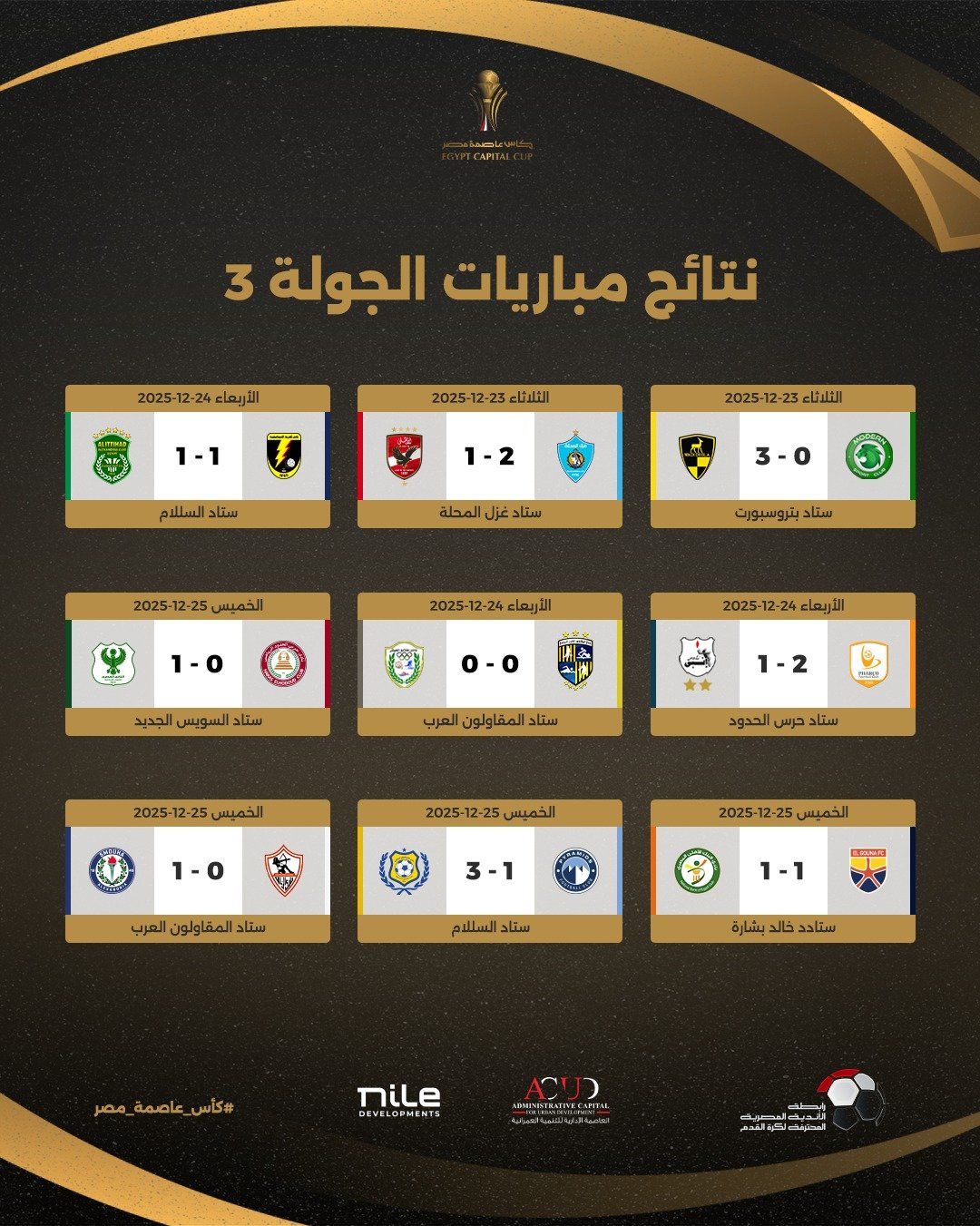 نتائج مباريات الجولة الثالثة من كأس عاصمة مصر