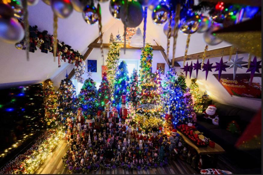 لقد احتفظ الزوجين بالرقم القياسي العالمي لمدة سبع سنوات، لكنهما حطما أفضل رقم شخصي لهما في عام 2025. منزلهما لا تتجاوز مساحته 180 مترًا مربعًا، لكن أشجار عيد الميلاد الـ 621 فيه تعرض ما مجموعه 125000 كرة زينة و50000 ضوء عيد الميلاد.