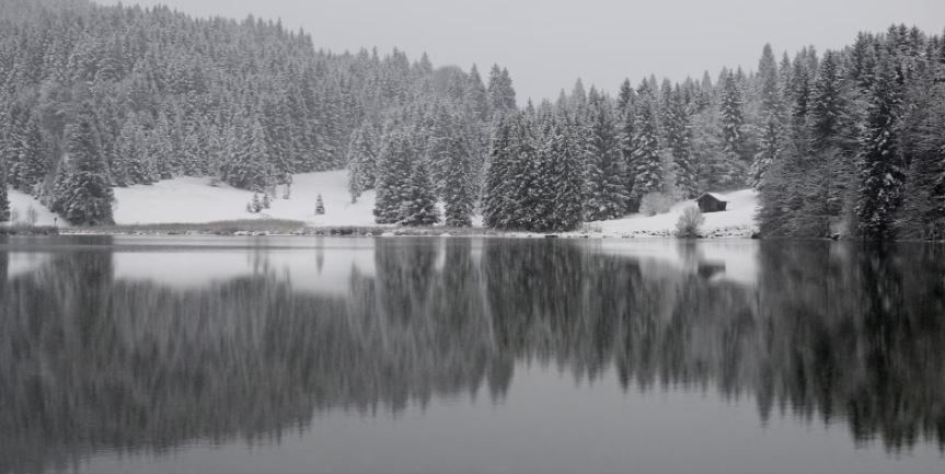 المناظر الطبيعية الثلجية على سطح مياه بحيرة جيرولد في مدينة جيرولد الألمانية