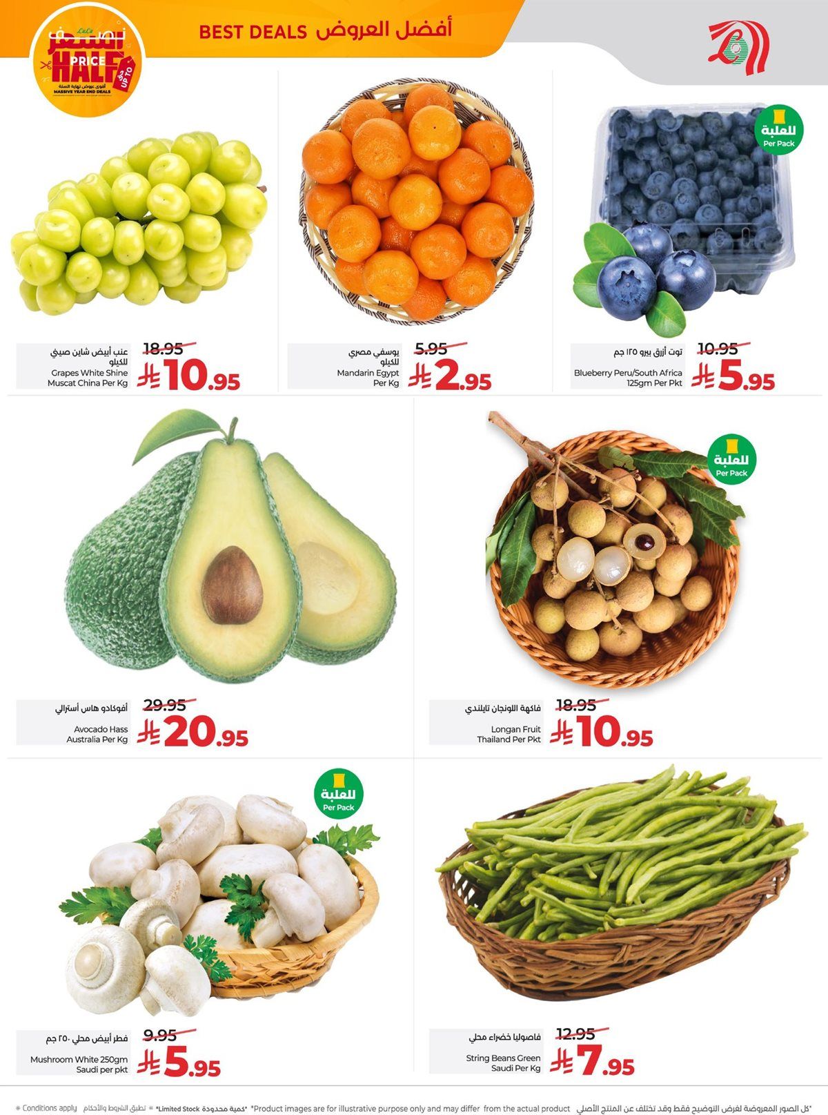 عروض لولو الرياض الطازج الاحد 28 ديسمبر 2025 تحتوي علي الشاي المعبأ والحليب البودرة ومعجون الطماطم والسكر الناعم وأنواع متعددة من الأرز البسمتي والجاسمين وزيت دوار الشمس مع تشكيلة من الخضروات والفواكه مثل العنب واليوسفي والتوت والأفوكادو والفاصوليا الخضراء والفطر مع عروض مميزة على الأسماك والدجاج