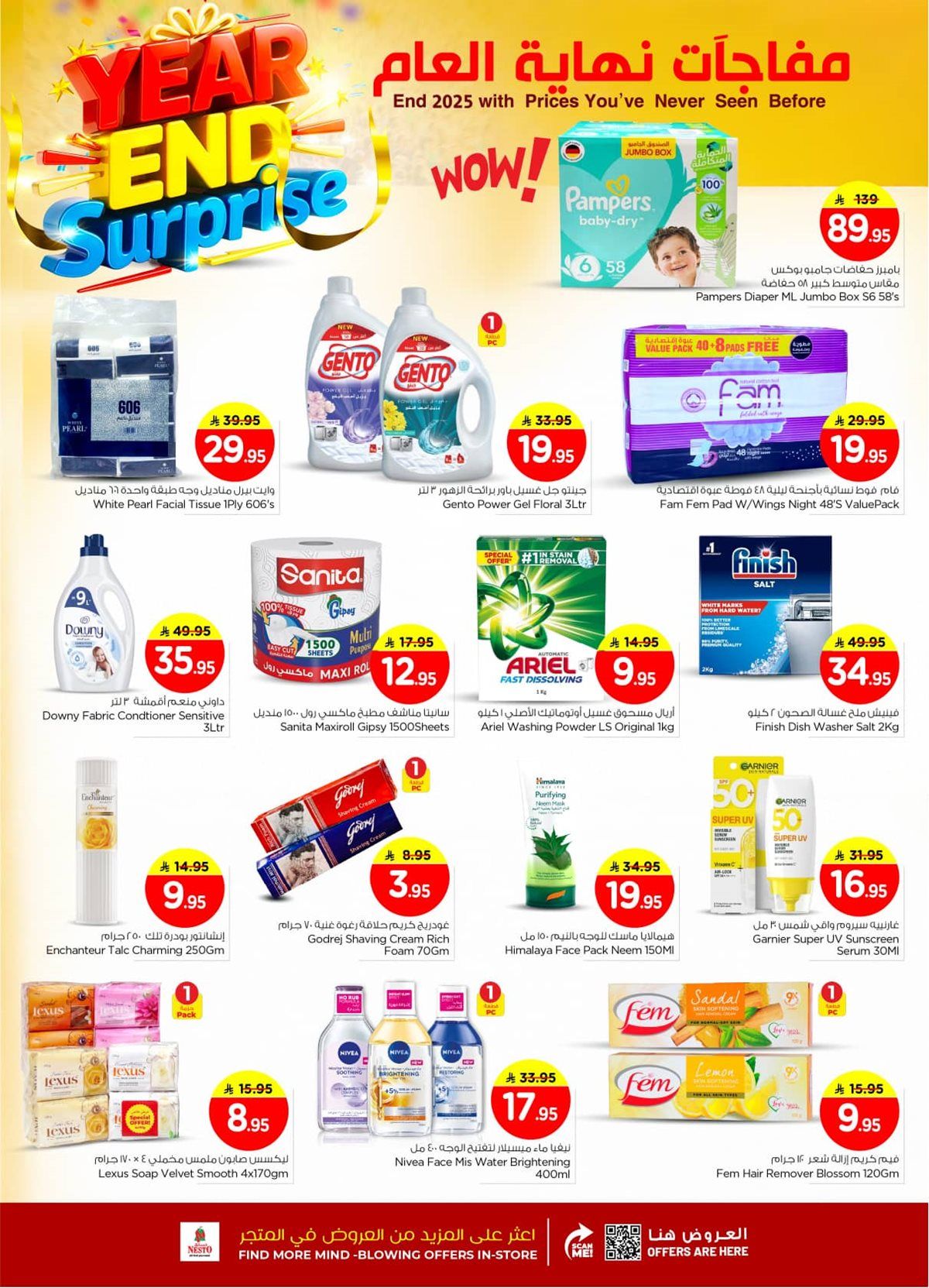 عروض نستو القصيم الاحد 8 رجب 1447هـ تحتوي علي حليب البودرة وزيت دوار الشمس وأرز بسمتي فاخر بالإضافة إلى شوكولاتة متنوعة ومكسرات الكاجو واليوسفي المصري ومعجون الأسنان والمناديل الورقية والبطاطس المجمدة و تشمل أصناف الأرز المختلفة وزيوت الطهي المتعددة وأنواع العسل الطبيعي ومنتجات الشوكولاتة