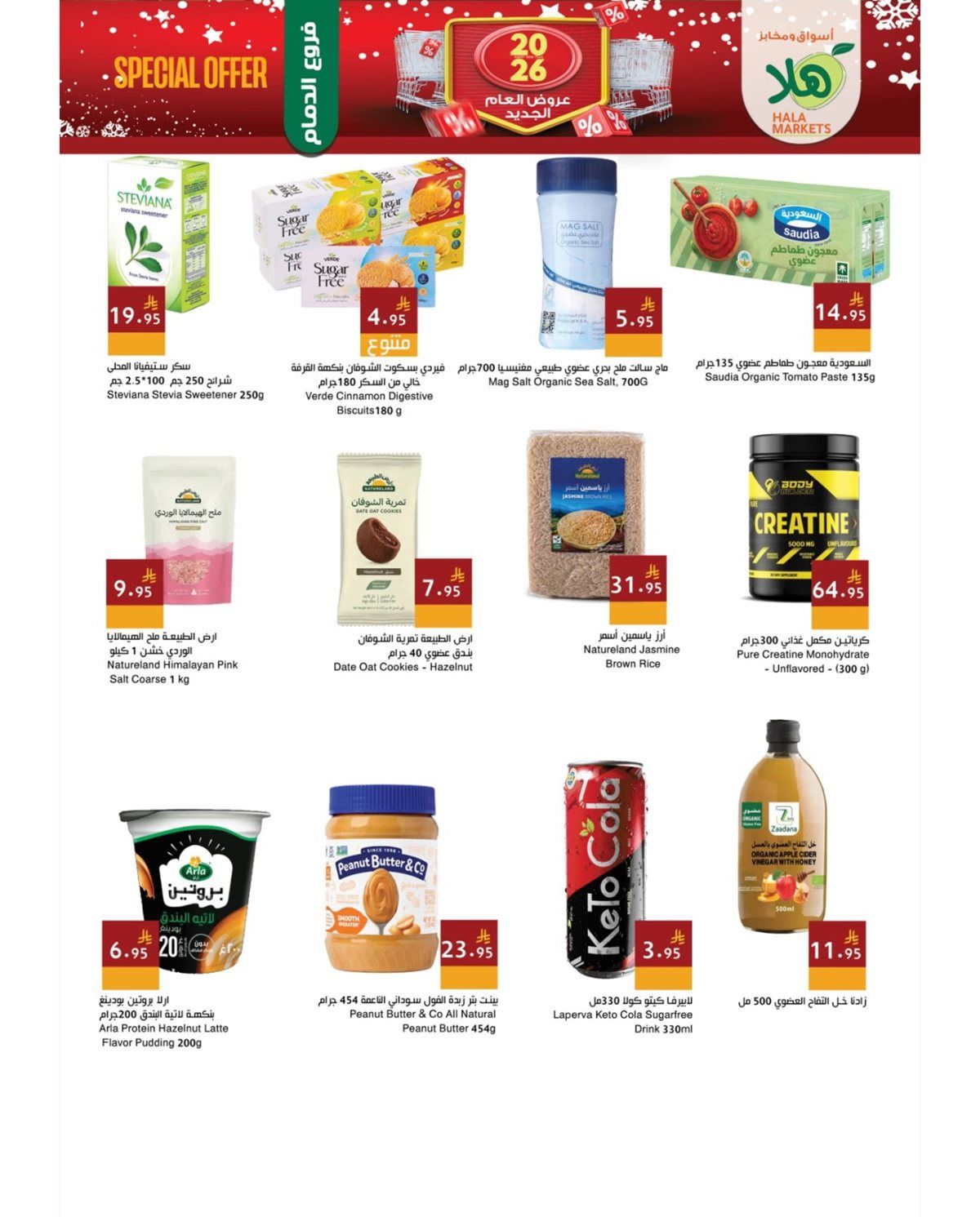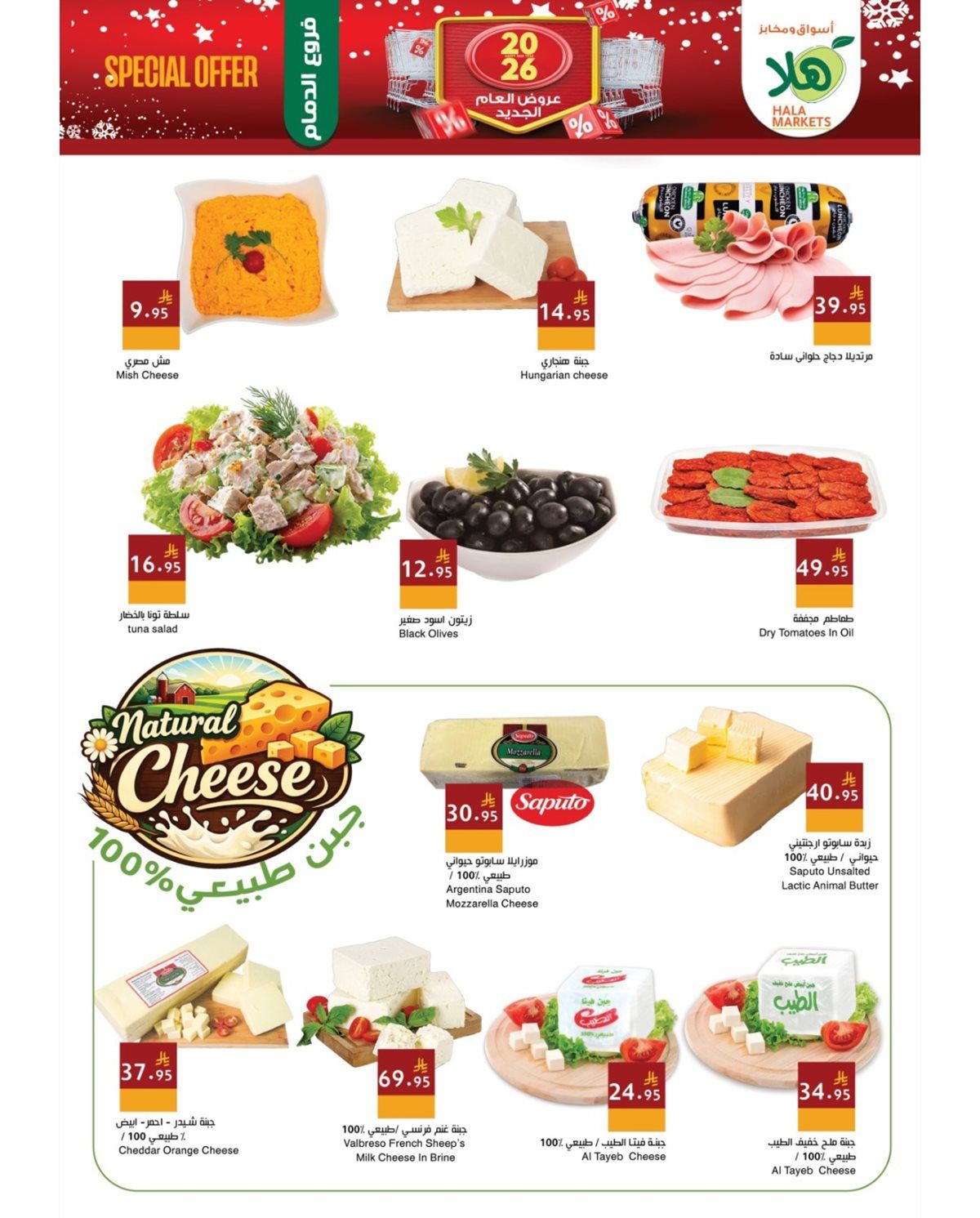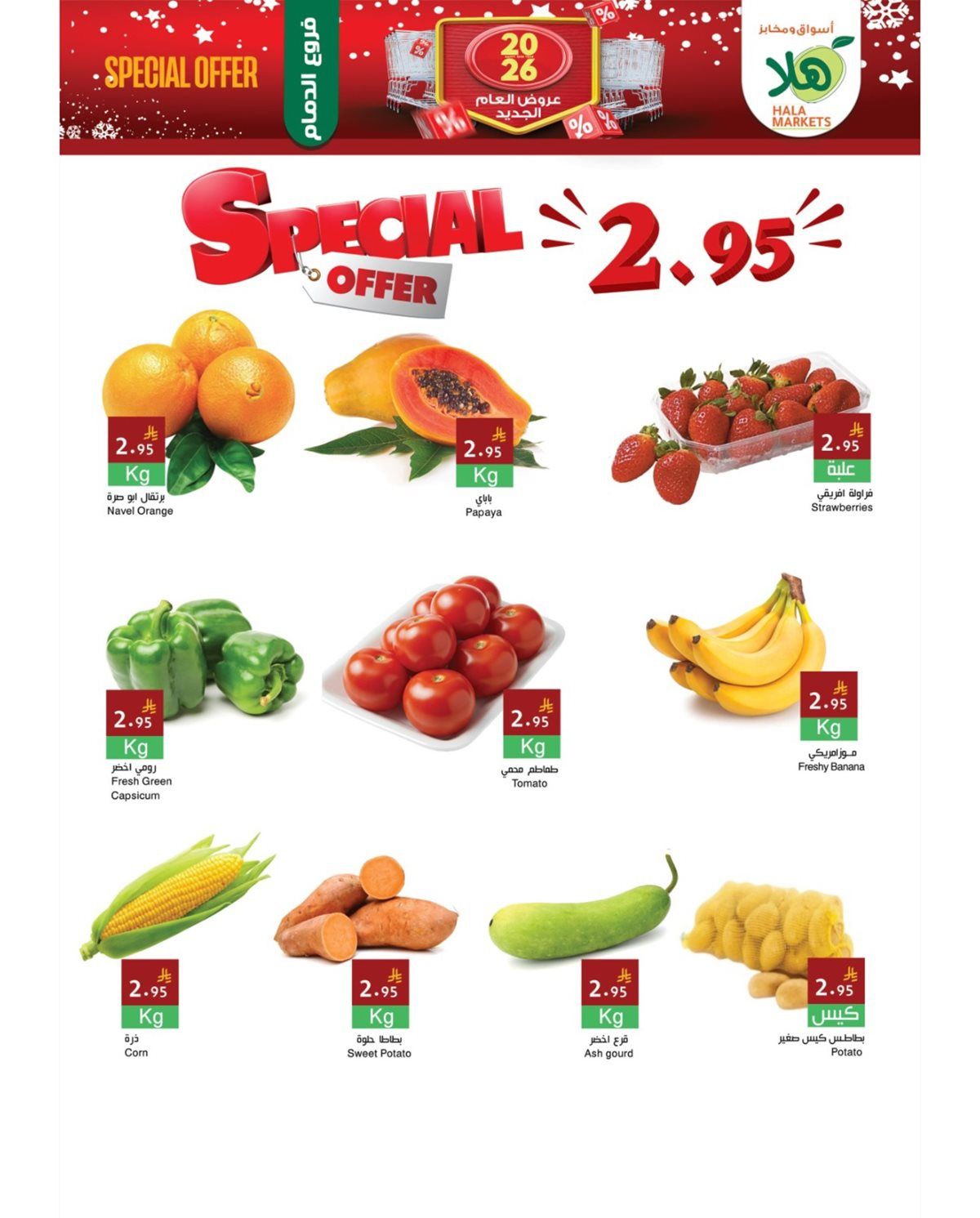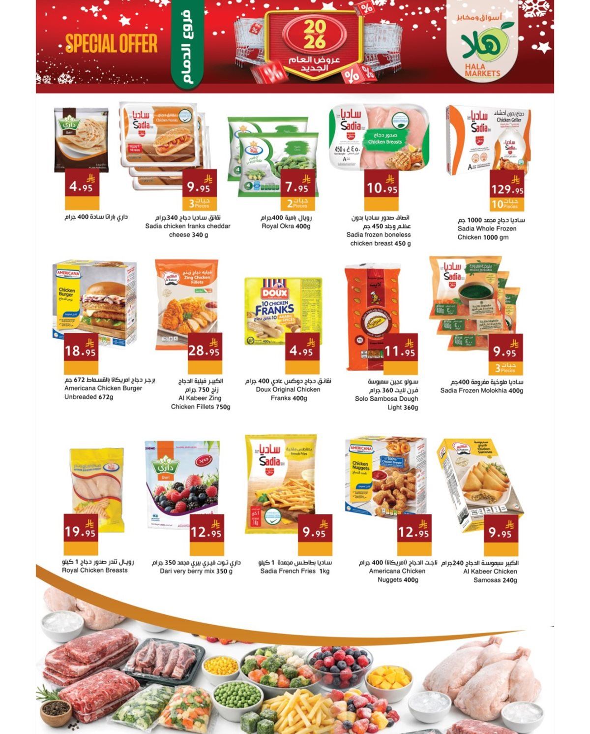 عروض اسواق و مخابز هلا الطازج الاحد 8 رجب 1447هـ و بتحتوي علي حليب البودرة والسكر الأبيض والأرز البسمتي وزيت الطبخ إلى جانب الحليب السائل والدجاج المجمد والموز والبرتقال واليوسفي والفاصوليا الخضراء والباذنجان والبطاطس والطماطم والفلفل والملفوف وغيرها من المنتجات و باقل الاسعار المناسبة للجميع