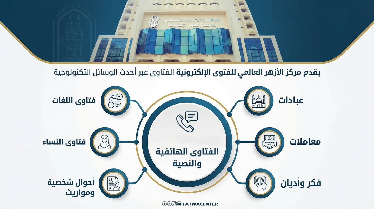 هل تحتاج إلى رأي شرعي معتمد في معاملاتك، أو عباداتك، أو مشكلاتك اليومية؟، هل لديك تساؤلات دينية هل تبحث عن فتوى دقيقة وواضحة من جهة موثوقة؟، أعلن مركز الأزهر العالمي للفتوى الإلكترونية مواصلته تقديم خدماته الإفتائية عبر أحدث الوسائل التكنولوجية، ليصل إليك أينما كنت في مصر أو خارجها.