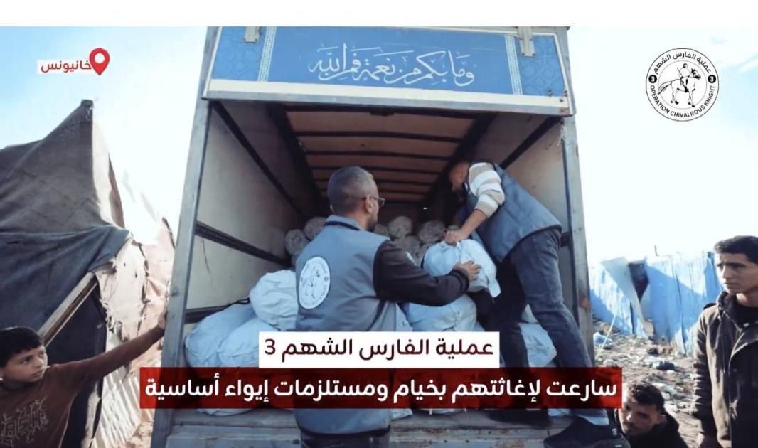 أعرب عدد من أهالي قطاع غزة عن شكرهم لدولة الإمارات العربية المتحدة، وذلك بعد أن قدمت عملية «الفارس الشهم 3»، خياماً ومستلزمات إيواء أساسية إلى عشرات العائلات النازحة في خان يونس، لتكون عوناً لهم، في وقت يعيشون فيه أوضاعاً مأساوية، خاصة في ظل الأمطار والظروف الجوية القاسية.