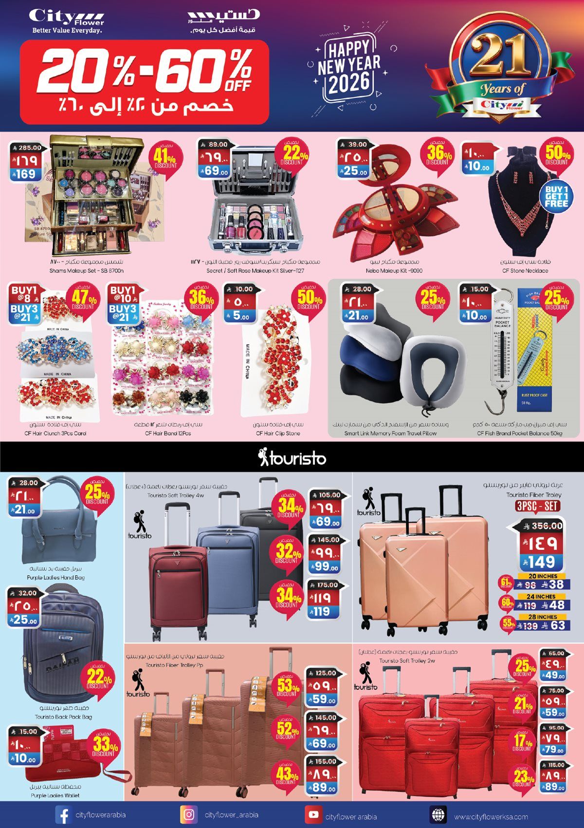 عروض سيتي فلور الرياض الاسبوعية الاربعاء 12 رجب 1447هـ و تحتوي علي المواد الغذائية الأساسية مثل الأرز بأنواعه والزيوت النباتية والسكر والدقيق بالإضافة إلى تشكيلة واسعة من اللحوم الطازجة والأسماك والدواجن بالاضافة الي الالكترونيات و مستلزمات المنزل و باسعار مناسبة للجميع ابقوا معنا ليصلكم كل جديد