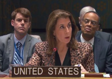 قالت ممثلة الولايات المتحدة بالأمم المتحدة، إن «إسرائيل لديها نفس الحق في أن يكون لها علاقات دبلوماسية تمامًا كأي دولة أخرى ذات سيادة»، فيما يتعلق بالتعامل مع المسائل المتعلقة بالسلم والأمن الدوليين في الشرق الأوسط ومنطقة القرن الإفريقي.