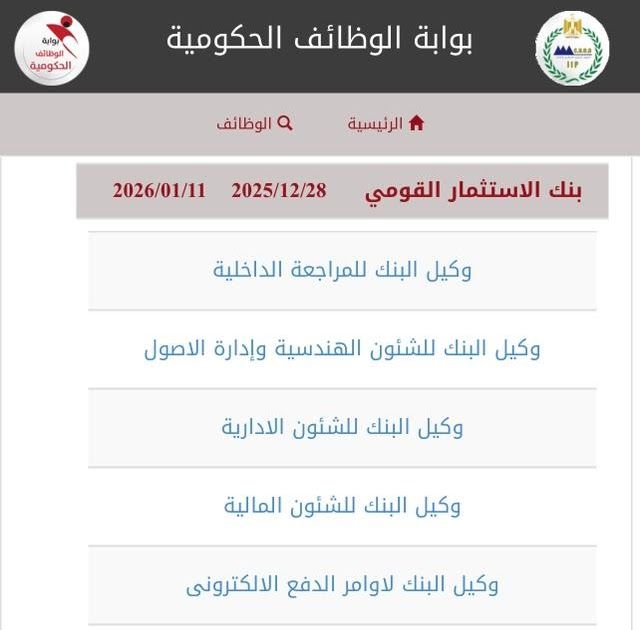 اعلان توظيف بنك الاستثمار القومى للحاصلين على مؤهلات عليا والتقديم على بوابة الوظائف الحكومية لمدة 20 يوماً
