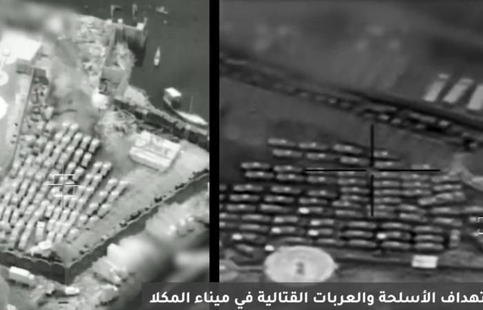 وأرفق المتحدث مقطع فيديو للمنشور يظهر الضربة التي نفذها التحالف على الميناء.