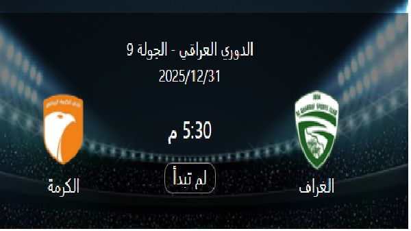 تقدم الوسيلة نيوز خدمة البث المباشر لمتابعة مباراة الكرمة ضد الغراف ضمن منافسات الدوري العراقي نجوم اليوم الأربعاء 31 ديسمبر 2025 ضمن منافسات الجولة التاسعة من دوري نجوم العراق موسم 2025-2026 لي ملعب الناصرية الدولي