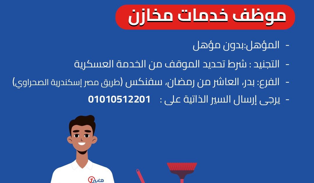 ملحوظة: مضمون هذا الخبر تم كتابته بواسطة وظائف ولا يعبر عن وجهة نظر مصر اليوم وانما تم نقله بمحتواه كما هو من وظائف ونحن غير مسئولين عن محتوى الخبر والعهدة علي المصدر السابق ذكرة.