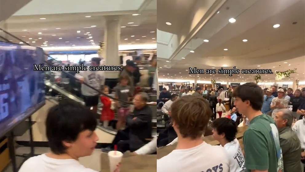 انتشر على مواقع التواصل الاجتماعي فيديو من أحد مراكز التسوّق، حيث ظهر ما يسمى بـ”منطقة الاستراحة للرجال”، وهي تضم شاشة تلفاز كبيرة مخصصة لعرض مباريات كرة القدم للآباء والأزواج والأصدقاء، بينما تتجول زوجاتهم أو صديقاتهم في المتاجر لشراء الهدايا خلال موسم الأعياد.
