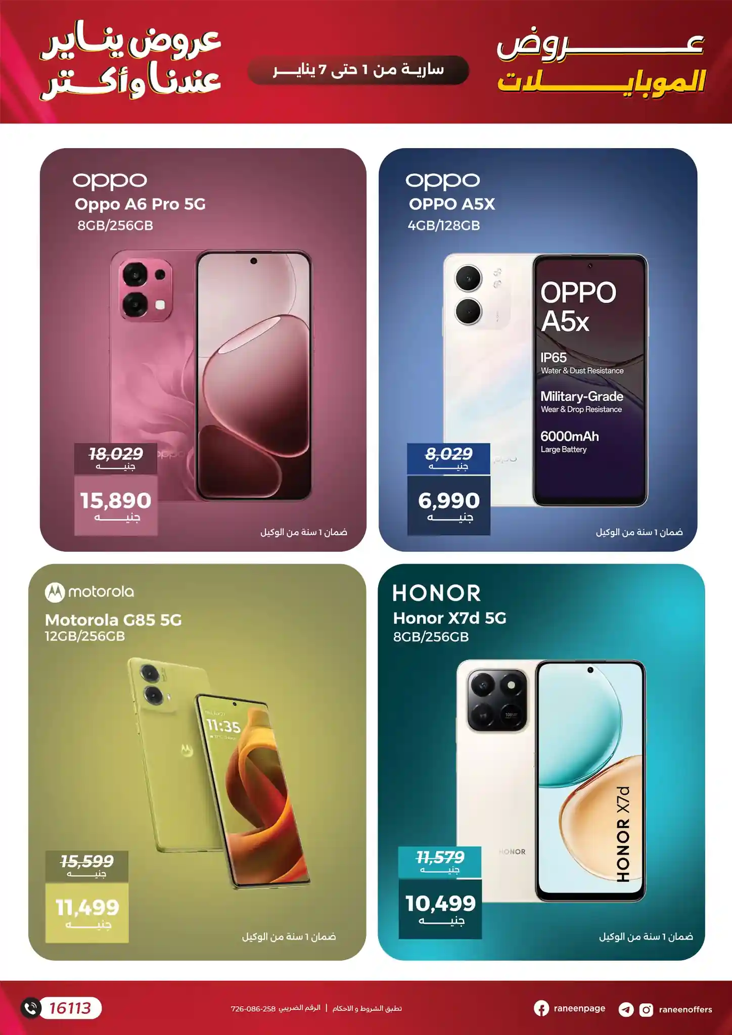 اليوم 1 يناير حتى 7 يناير 2026 الموبايلات والاكسسوارات بجميع فروع رنين