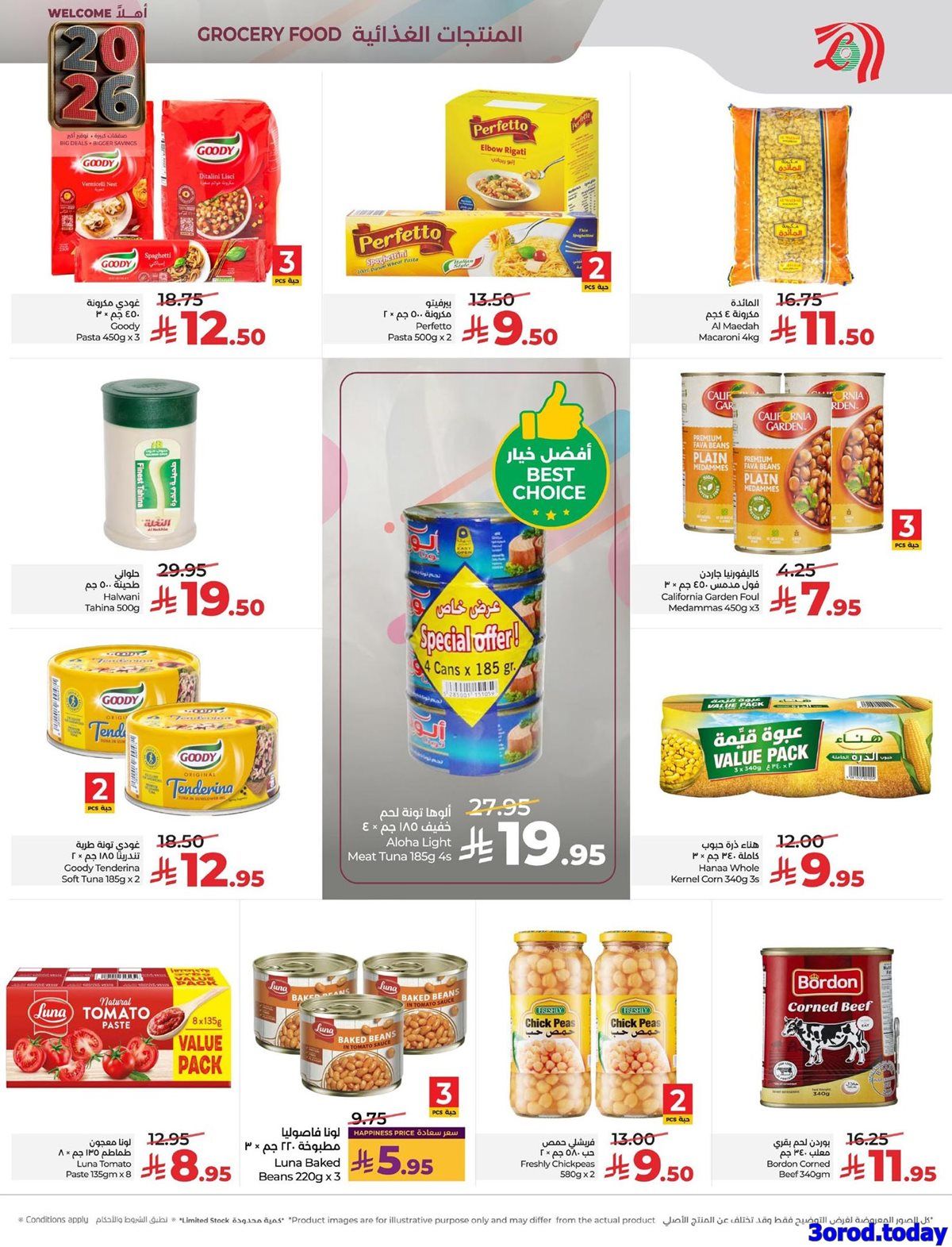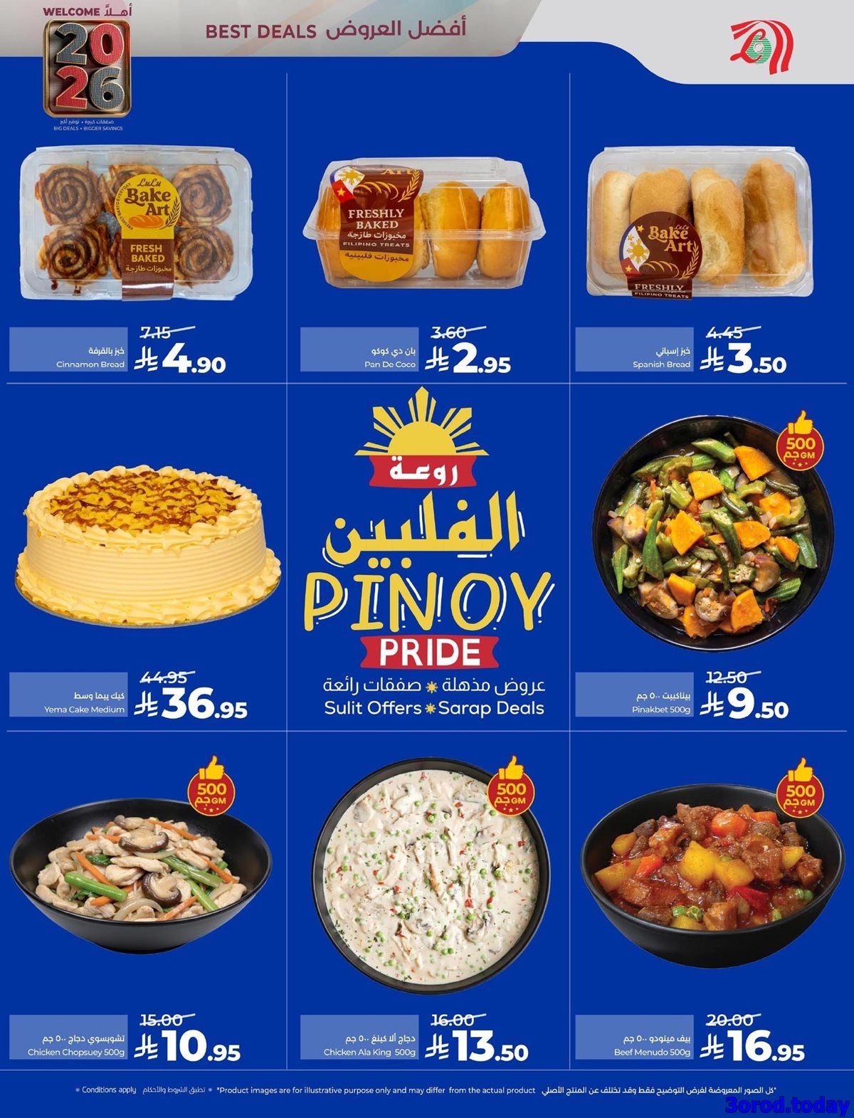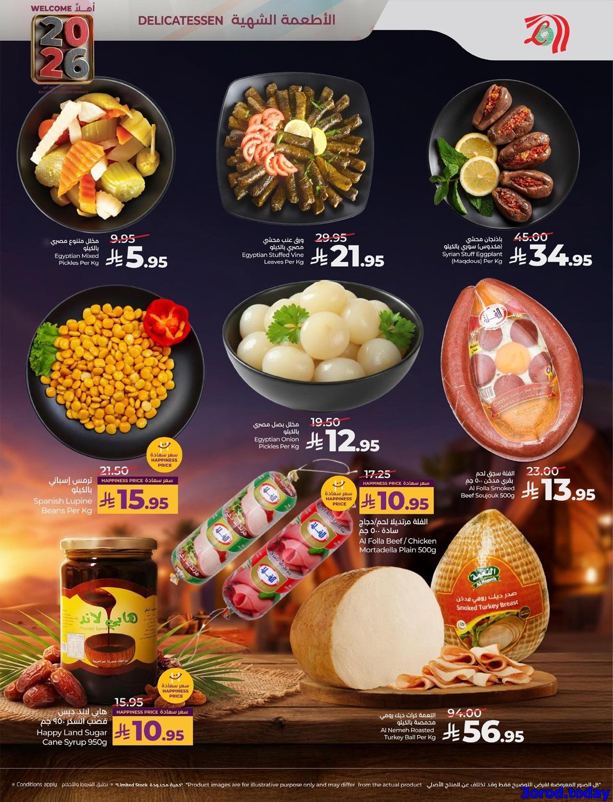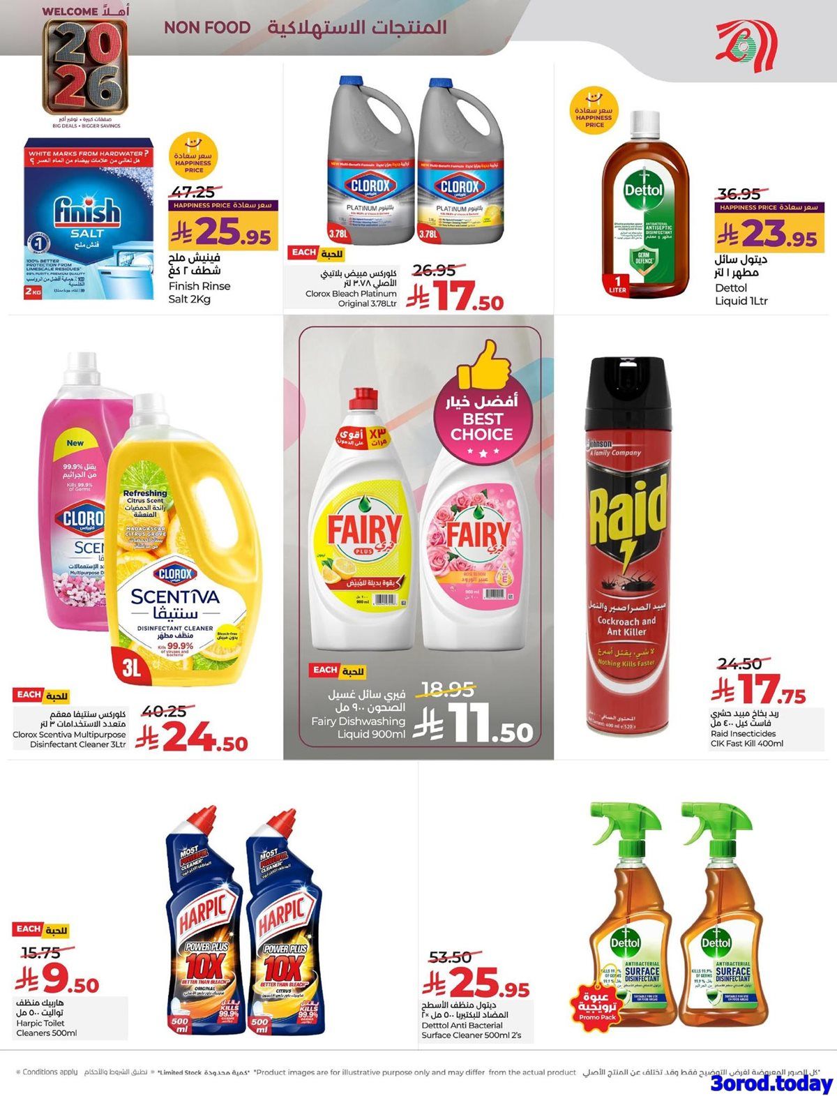 لولو الخميس 1 يناير 2026 الموافق 12 رجب 1447هـ بتقدم ليكم دجاج كامل مجمد وفخذ دجاج وصدر دجاج وساق دجاج وأجنحة دجاج وبرغر دجاج ونقانق دجاج ولحم بقري مفروم ولحم غنم طازج بجانب ذلك بتوفر كمان لولو الرياض كفتة غنم وأحشاء غنم وفراخ مصرية وشاورما دجاج وأرز بسمتي أبيض و منظفات متنوعة