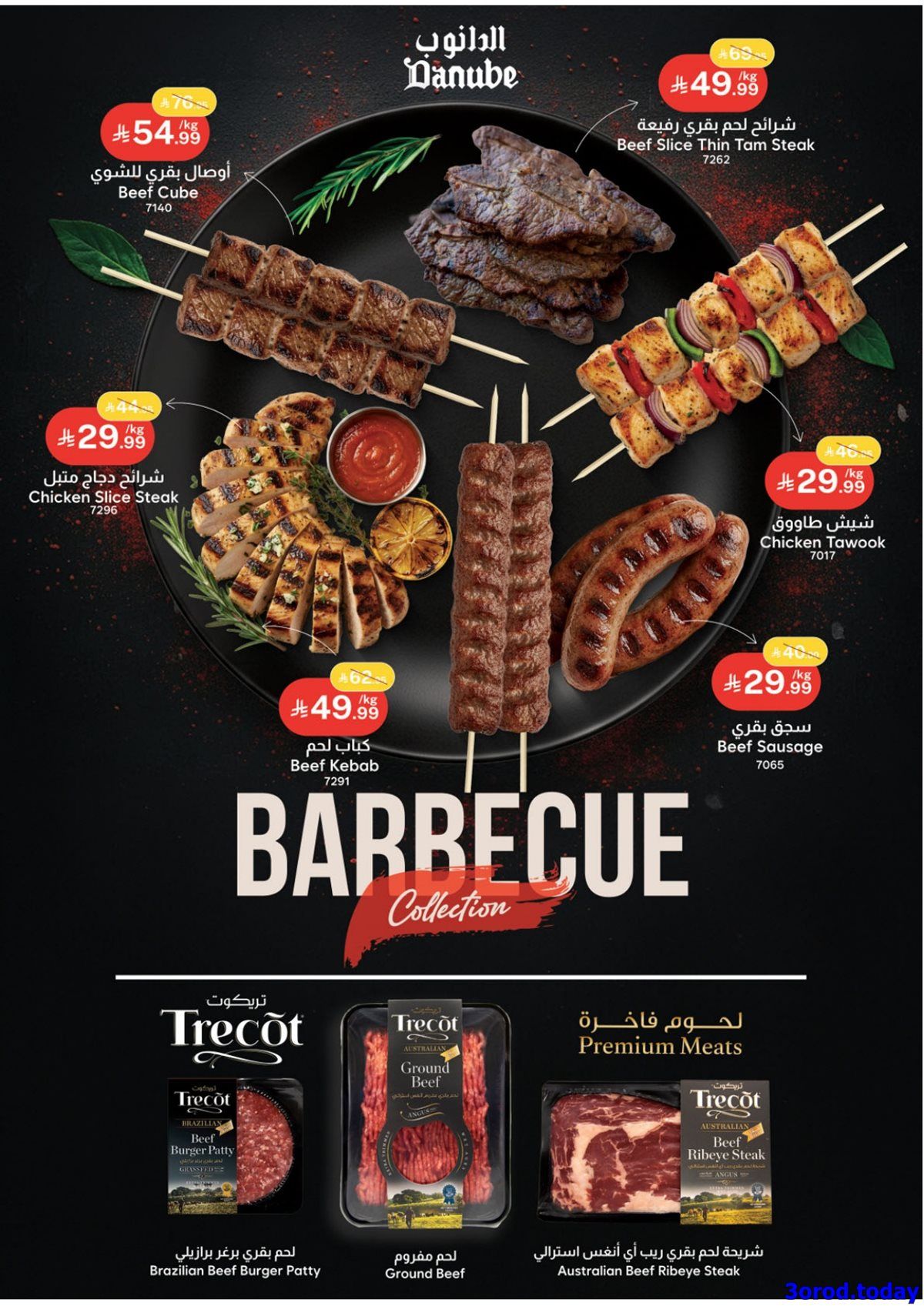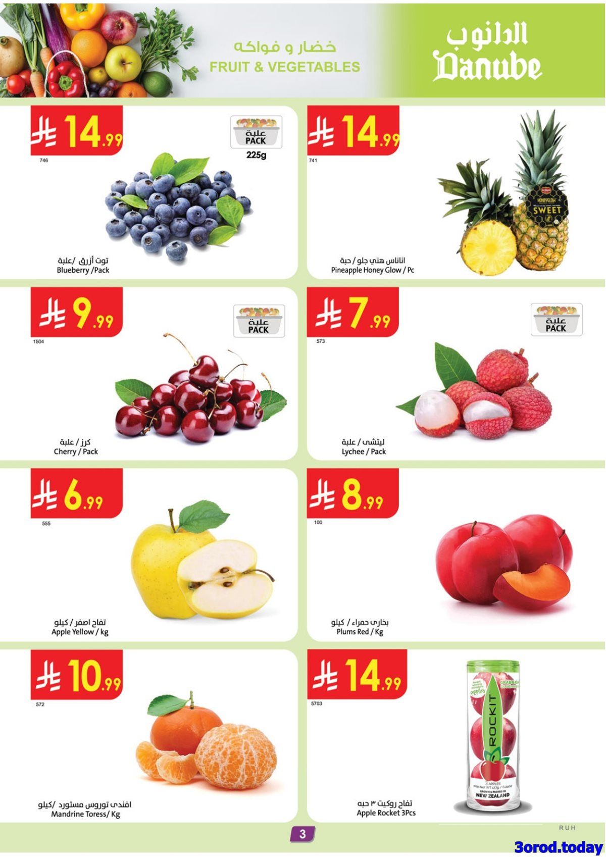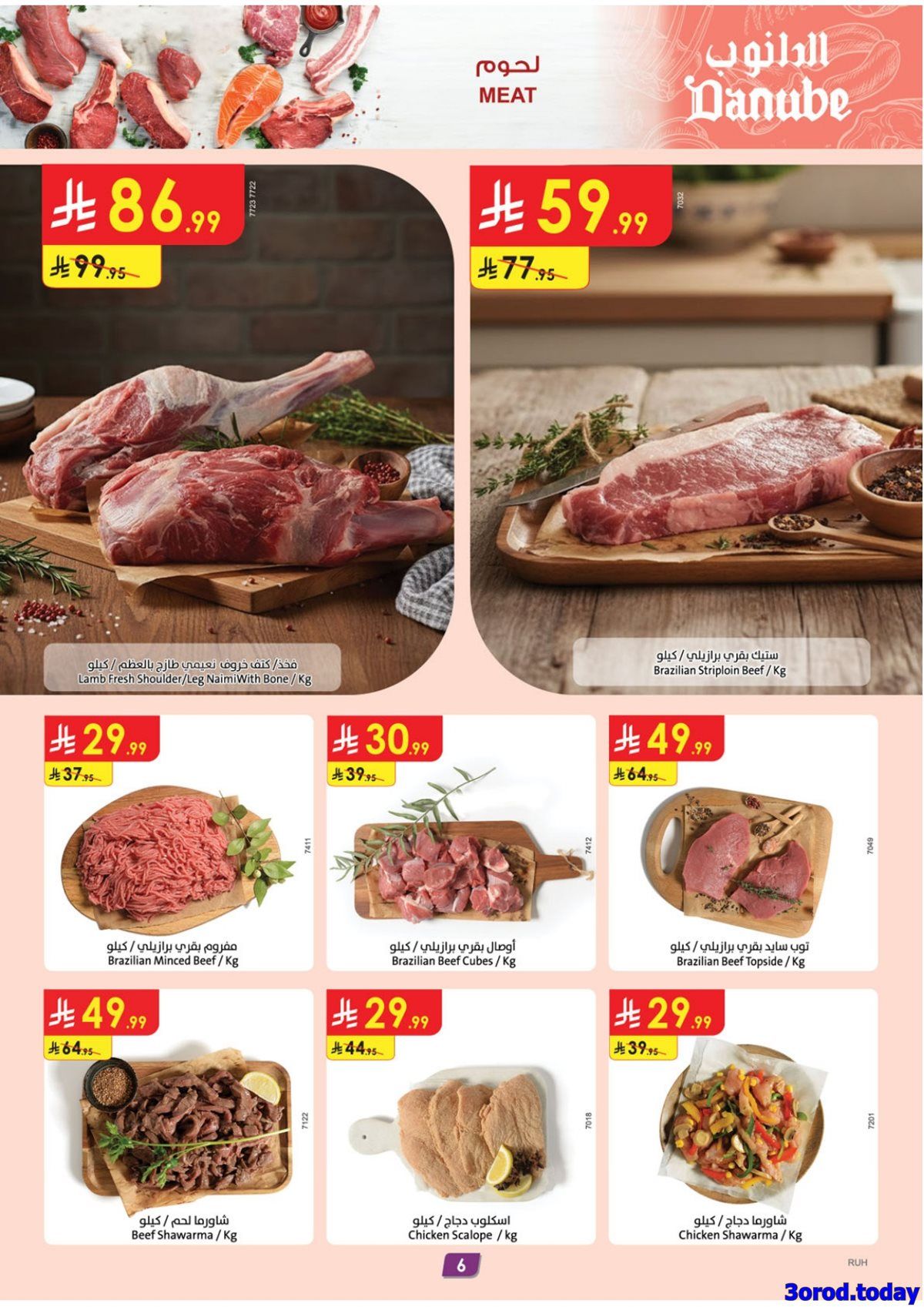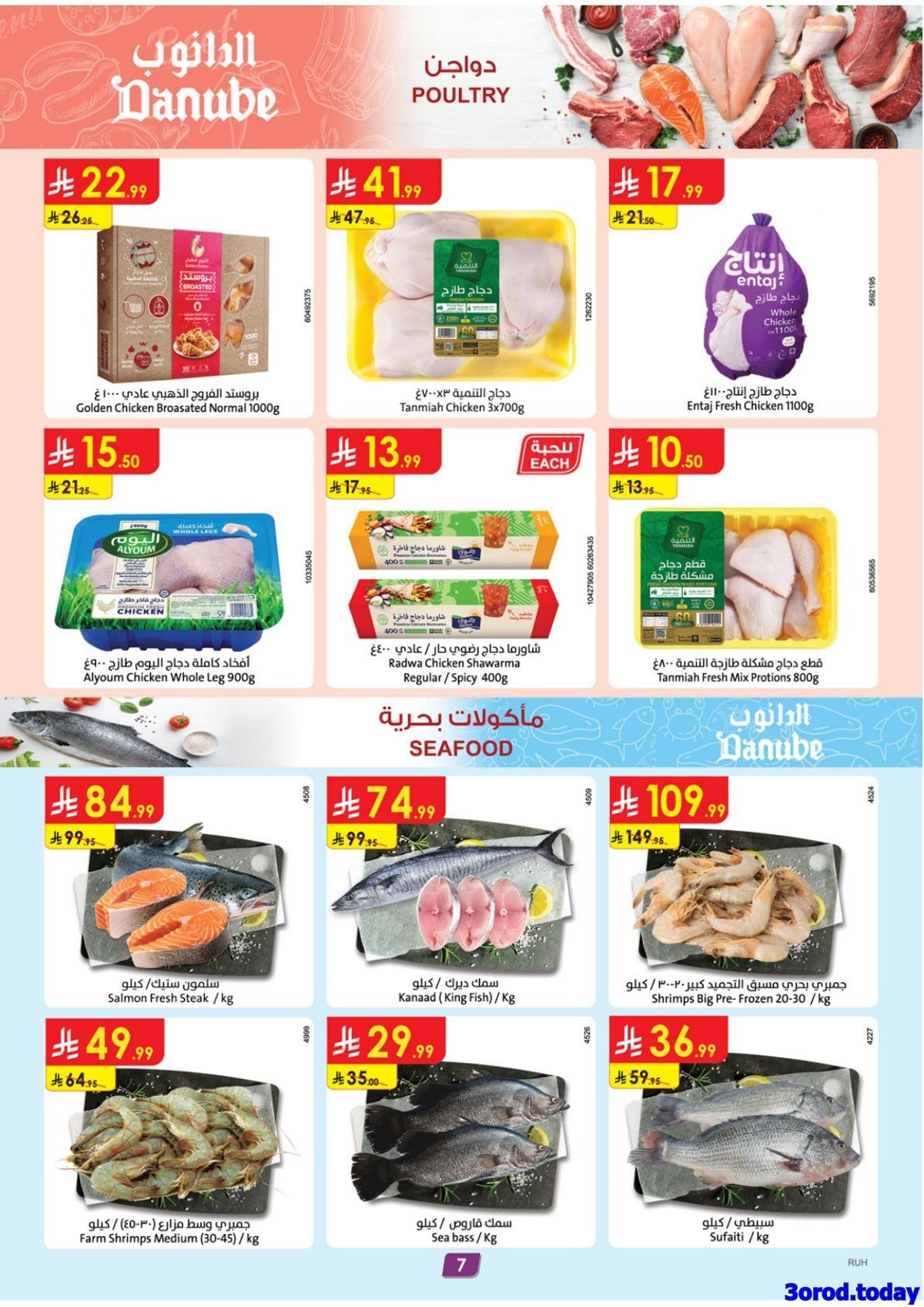 عروض الدانوب الرياض الخميس 12 رجب 1447هـ الموافق 1 يناير 2026 تنطلق بالأجهزة و تضم قلاية هوائية ومروحة أرضية وسخان أطباق ومفرمة خضار كهربائية ومكواة بخار ثم تضم المنتجات الغذائية مثل الدقيق الأبيض والسكر الخام والكاكاو الخام غير المحلى والنشا وخميرة الحلويات و تشكيلة من اللحوم و الخضروات و باقل الاسعار