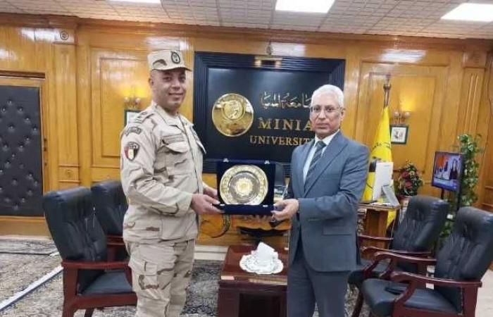 في إطار حرص جامعة المنيا على دعم وتعزيز قيم الانتماء الوطني والوعي القومي لدى طلابها، وترسيخ التعاون مع مؤسسات الدولة الوطنية، كرّم الدكتور عصام فرحات، رئيس جامعة المنيا، العميد محمد إسماعيل، مدير إدارة التربية العسكرية بالجامعة، تقديرًا لجهوده المتميزة في تطوير منظومة التربية العسكرية، ودوره البارز في تنمية وعي الطلاب وتعزيز روح الانضباط والانتماء الوطني لديهم.