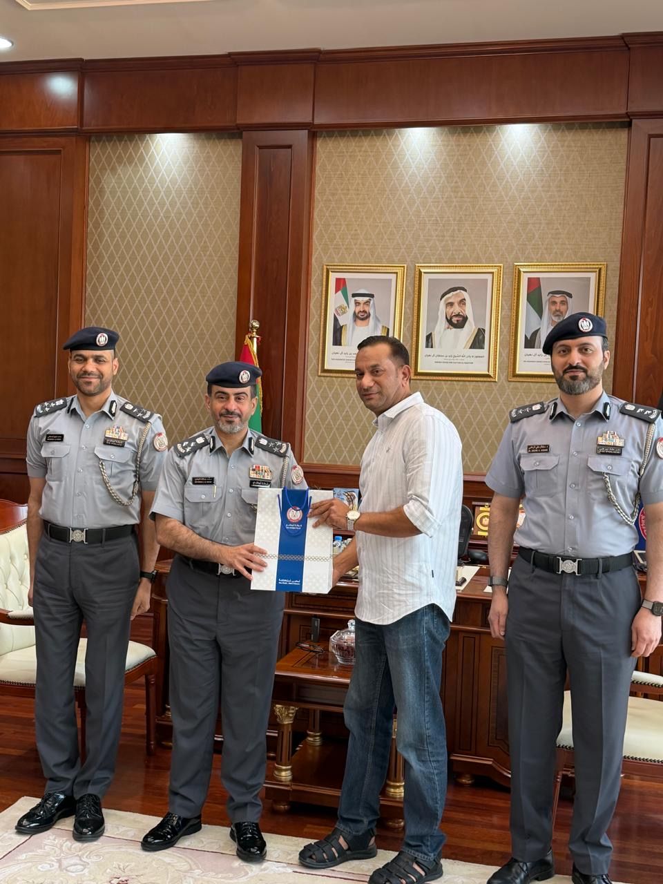 وقدم مدير مديرية شرطة العاصمة بقطاع الأمن الجنائي العميد الدكتور حمد عبدالله النيادي، هدية للآسيوي شاكراً له مبادرته المسؤولة في التعاون مع الشرطة وحسن أمانته، مؤكدًا أن تصرفه يعكس روح التعاون الإيجابي بين أفراد المجتمع وشرطة أبوظبي، مشيرًا إلى أن مثل هذه المبادرات تعزز من ثقافة الأمانة وتدعم مسيرة الأمن والاستقرار التي تحققها شرطة أبوظبي في كافة مناطق الإمارة.