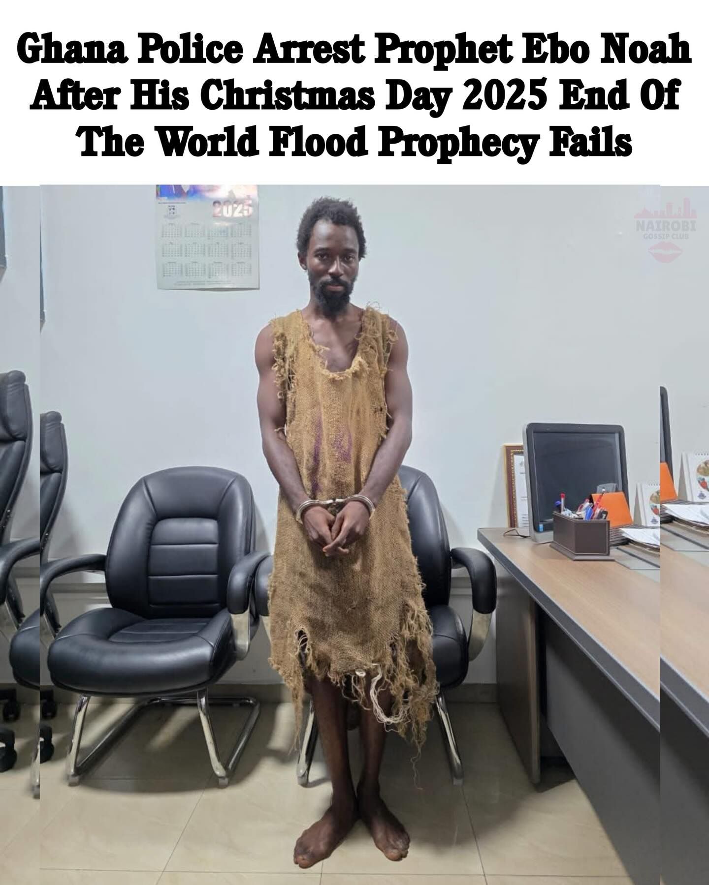 ادعاءات مدعي النبوة إيبو نوح عبر مواقع التواصلوانتشرت عبر وسائل التواصل الاجتماعي صورة لمدعي النبوة إيبو نوح وهو مكبل بالأصفاد داخل حجز الشرطة، في حين أظهر مقطع فيديو متداول زعمه أن الله حذره من نهاية العالم في 25 ديسمبر 2025.