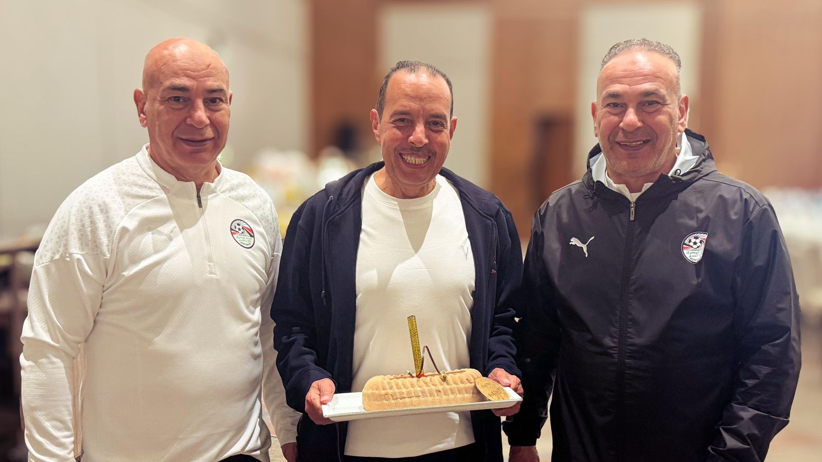 حرص منتخب بقيادة التوأم حسام وإبراهيم حسن على الاحتفال بعيد ميلاد الرباعي حمادة الشربيني عضو مجلس إدارة اتحاد الكرة ورئيس البعثة وسعفان الصغير مدرب حراس مرمي المنتخب، وثنائي الفريق أسامة فيصل وأحمد عيد عقب انتهاء تدريب الفريق مساء اليوم.
