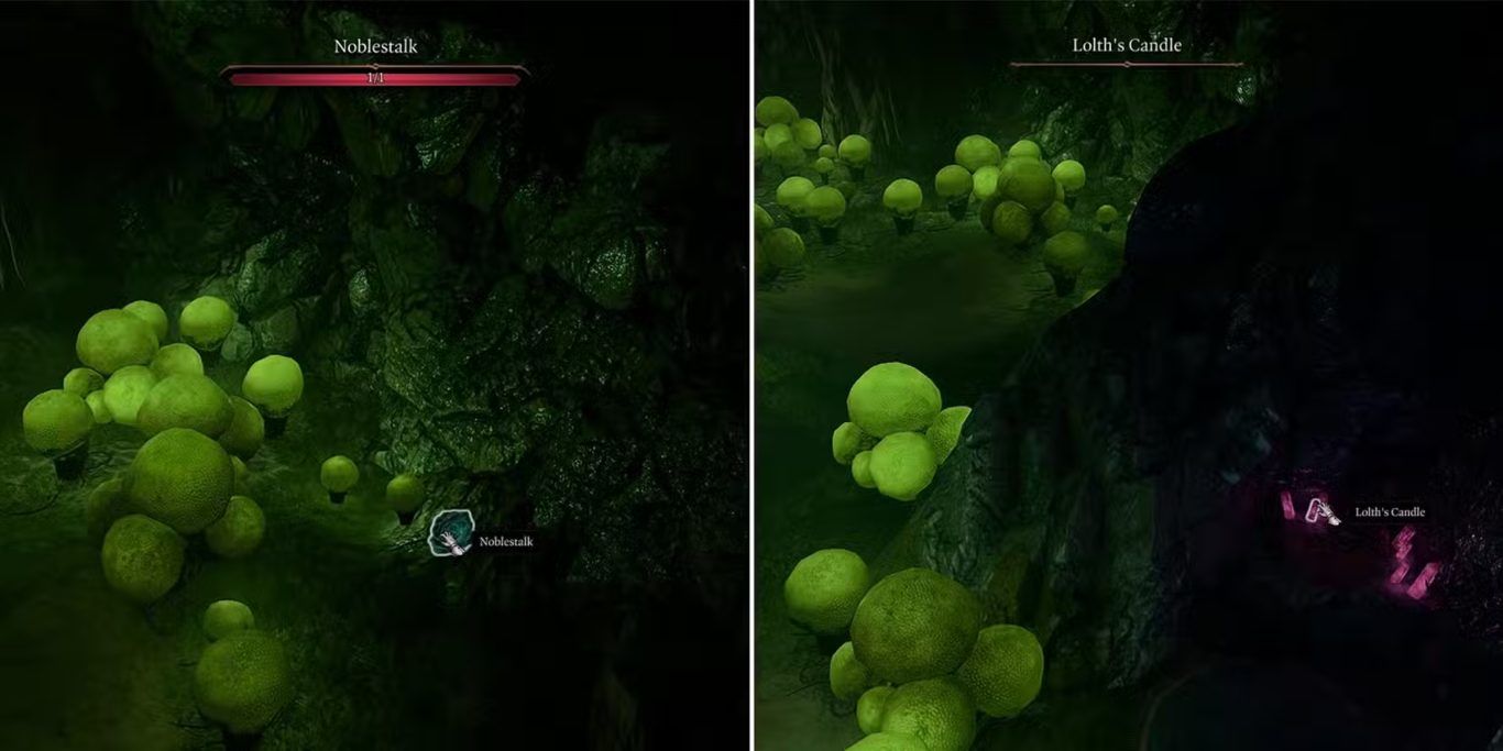 في الركن البعيد من الكهف يمكن لشخصية Tav العثور على عنصر Noblestalk وهو مادة نادرة للغاية كان Mushroom Picker يبحث عنها قبل اختفائه. هذا العنصر يتميز بهشاشته الشديدة حيث يمتلك نقطة صحة واحدة فقط مما يعني أنه سيتدمر فورا إذا انفجرت فطريات bibberbang قبل التقاطه. لذلك فإن تفجير الفطريات قبل الحصول على Noblestalk يؤدي إلى فقدانه نهائيا ويجعل استعادته مستحيلة في هذه الجولة.