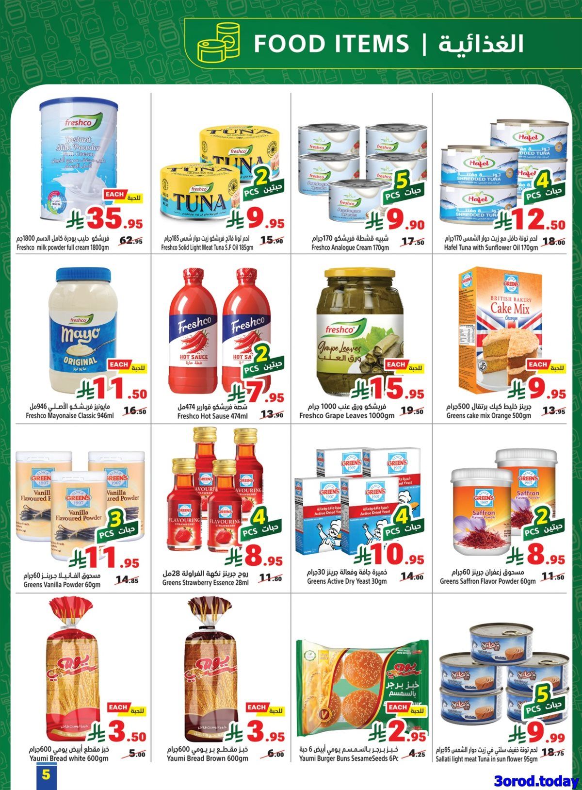 تحتوي عروض متاجر السعودية علي : زيت كانولا صحي – شاي أعشاب مهدئ – حبوب الشوفان الكاملة – تونة فاخرة – خل تفاح عضوي – سكر قصب طبيعي – شراب فراولة مركز – زيت سمسم بلدي – حبوب كينوا – رقائق شوفان مقرمشة – صدور ديك رومي مدخن – شرائح جبن سويسري – زيتون يوناني محشو – مخلل خيار مشكل – صوص باربيكيو