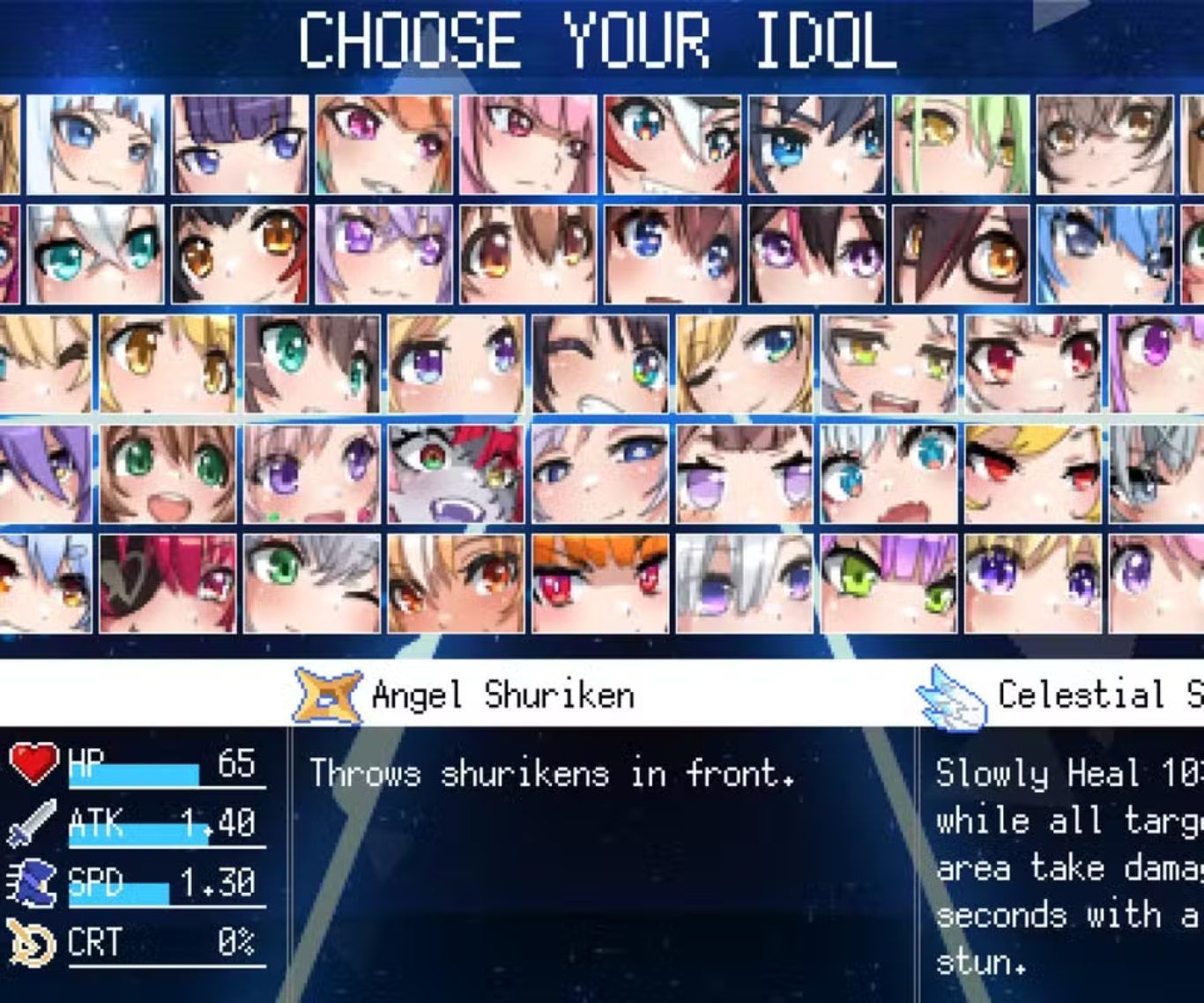 يعد فتح الشخصيات الجديدة أحد أبرز دوافع الاستمرار في اللعب حيث يمكن للاعب قضاء ساعات طويلة فقط في محاولة فتح جميع Vtubers وتجربة أساليب اللعب المختلفة الخاصة بكل واحدة منهم.