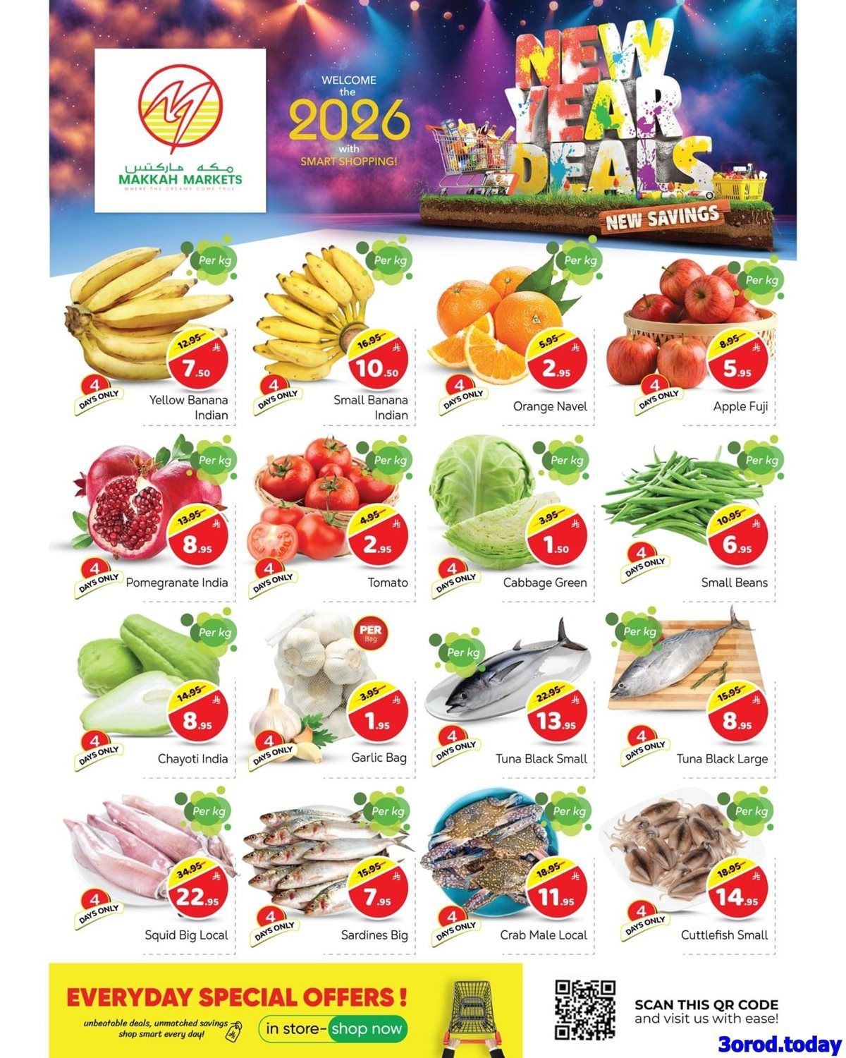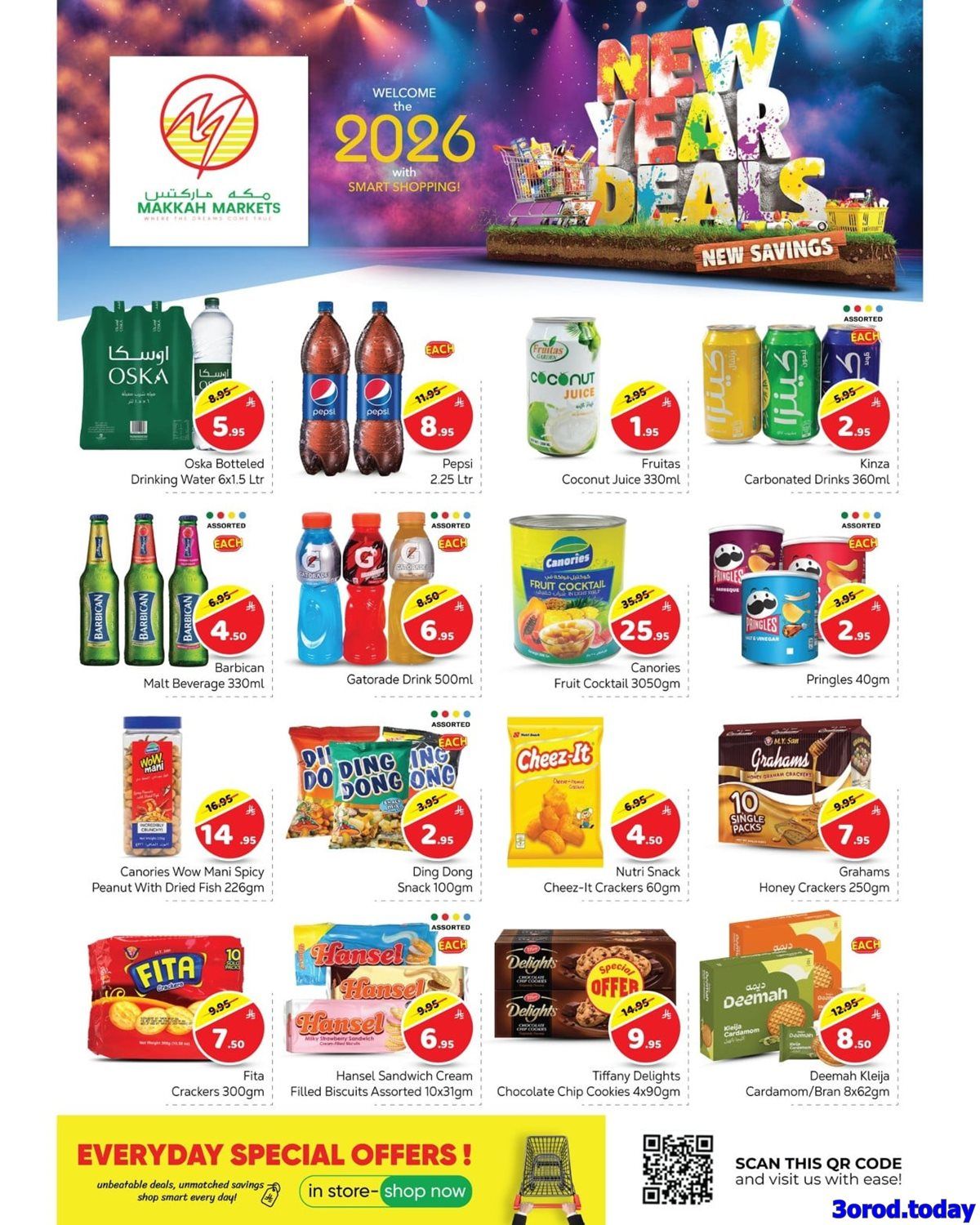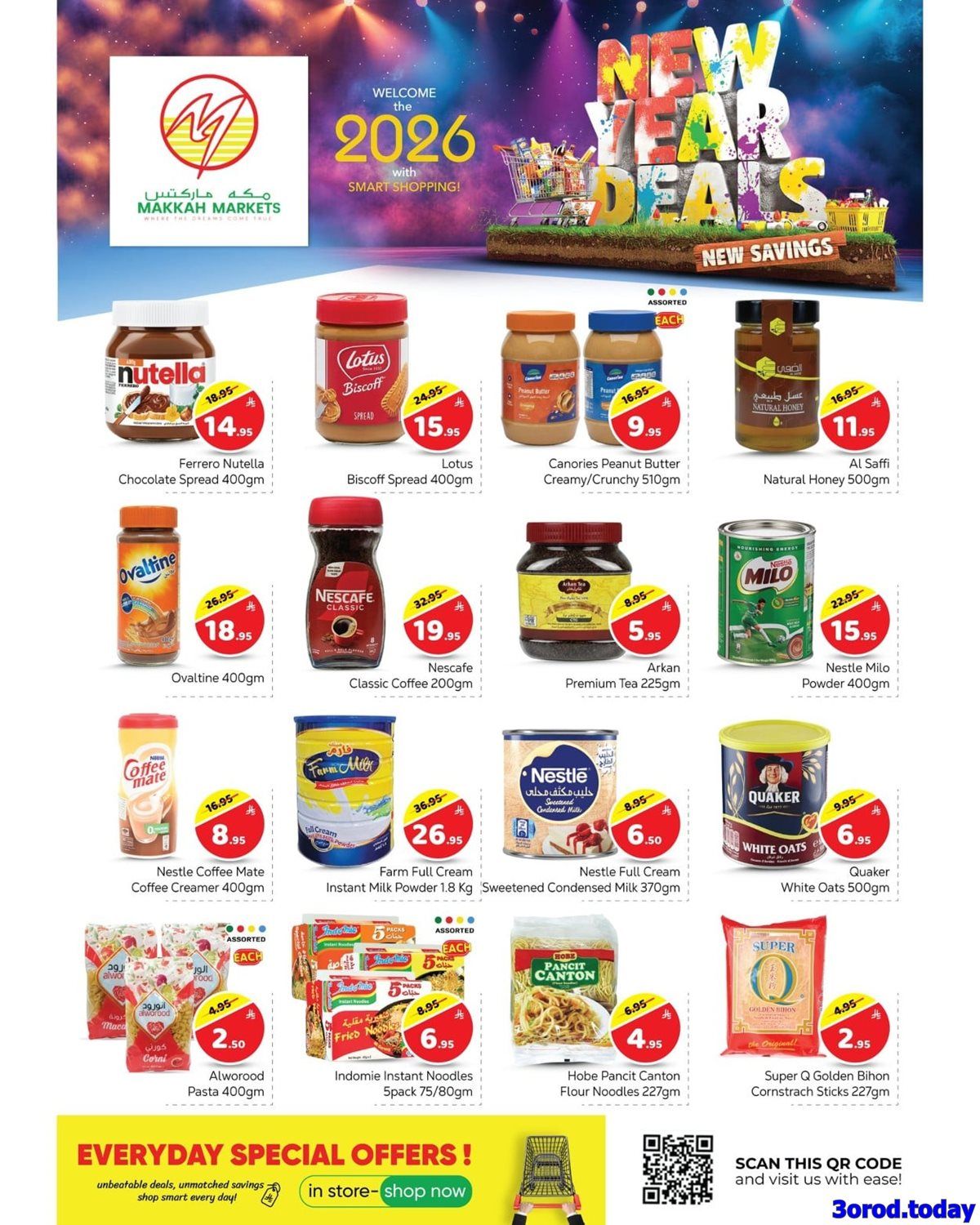 عروض مكة هايبر ماركت الاسبوعية و التي تستمر حتي السبت 10-1-2026 الموافق 21 رجب 1447هـ وبمناسبة تخفيضات العام الجديد بتقدم تشكيلة من منتجات متنوعة منها غذائية و منها ادوات المطبخ و مستلزمات تحضير الطعام و في عروض حصرية تتممتع بخصومات مميزة في الاسعار ابقوا معنا ولا تفوتو الفرصة