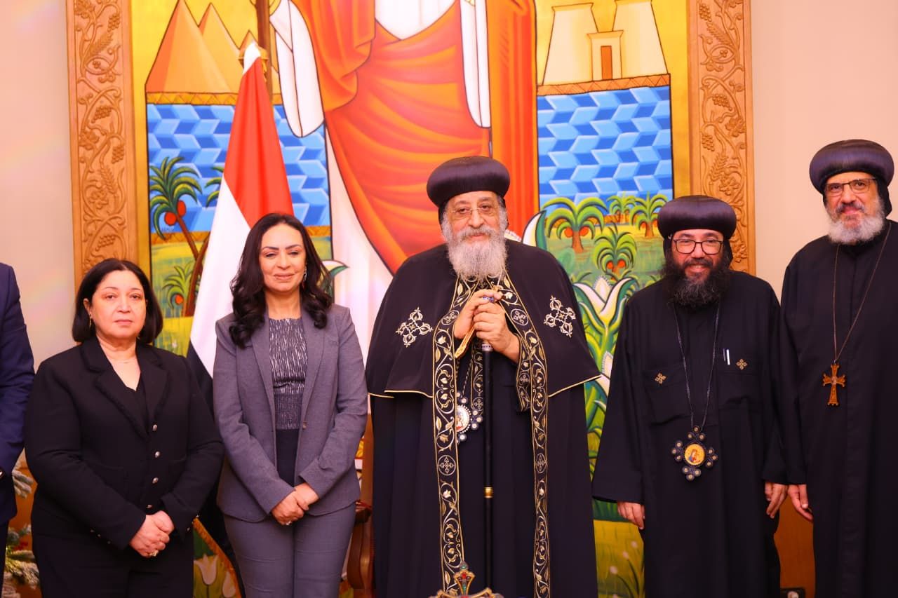 وزيرة التضامن تزور الكاتدرائية المرقسية وتهنئ البابا تواضروس بعيد الميلاد