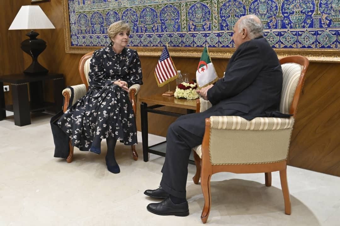 ‏استقبل الدولة، وزير الشؤون الخارجية والجالية الوطنية بالخارج والشؤون الإفريقية، ‎أحمد عطاف، اليوم بمقر الوزارة، ‎إليزابيث مور أوبين، سفيرة الولايات المتحدة الأمريكية.