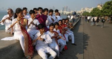 تحافظ الهند على الموروث الموسيقى الشعبى، للعزف على آلة الفلوت، وذلك حسبما نشرت وكالة الأنباء الأوروبية صورا لعازفو الفلوت الهنود وهم يتدربون في منطقة مارين درايف في مومباي استعداداً لعزف سيمفونية الفلوت