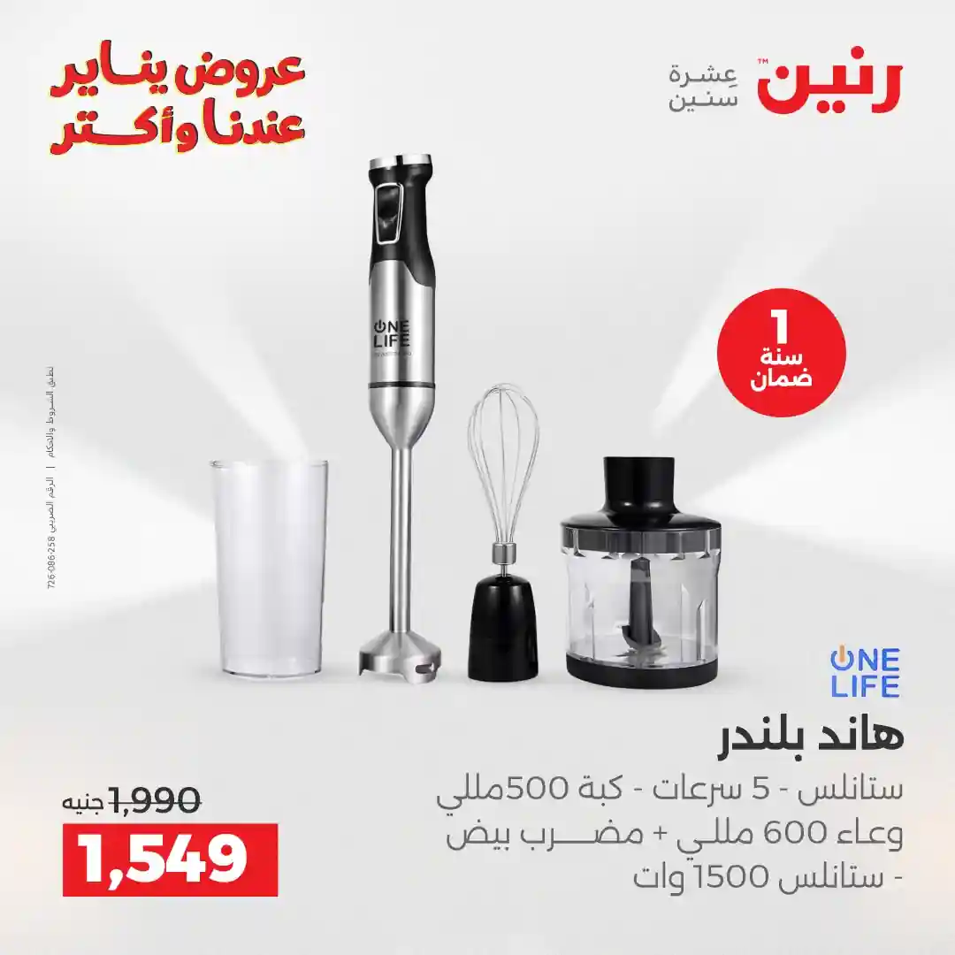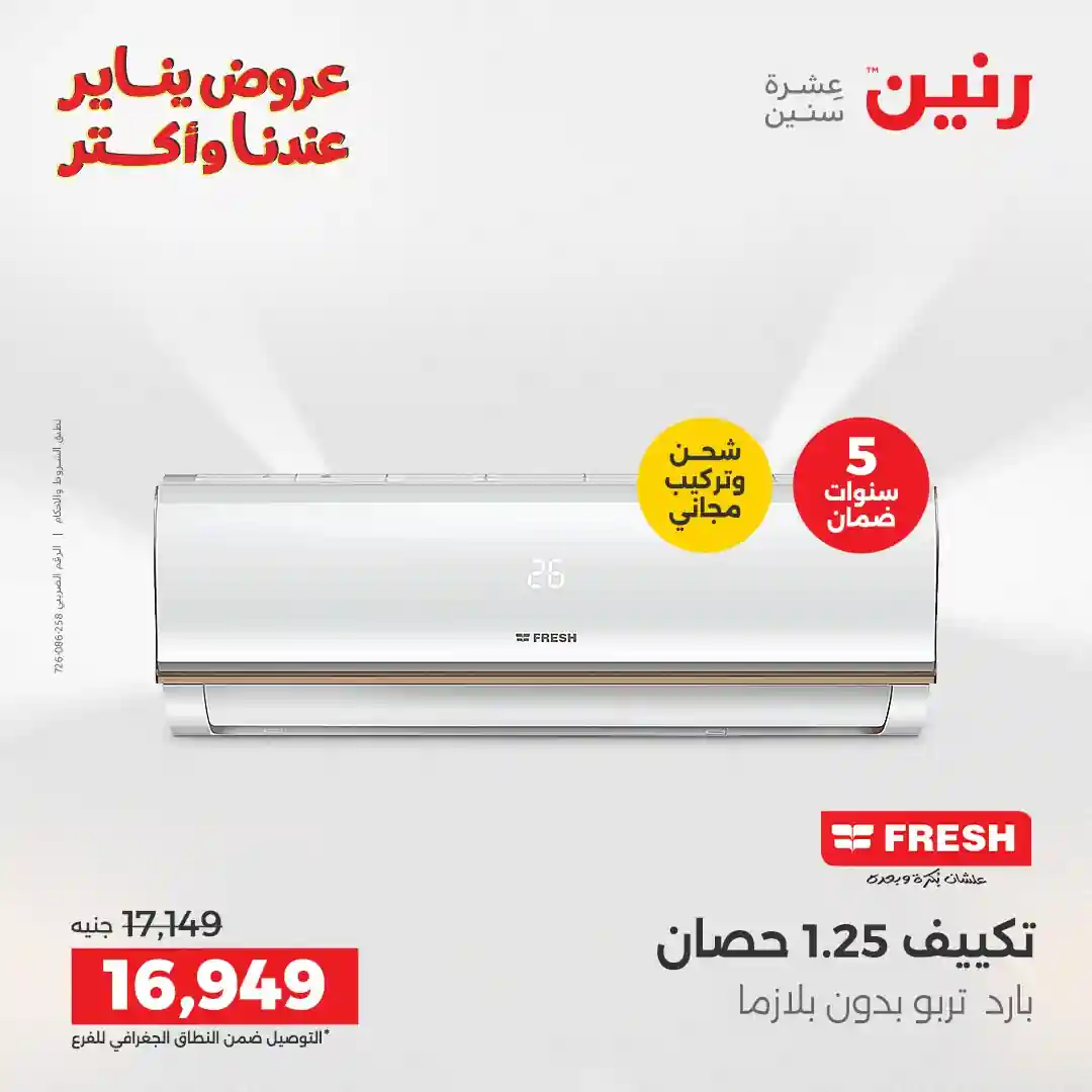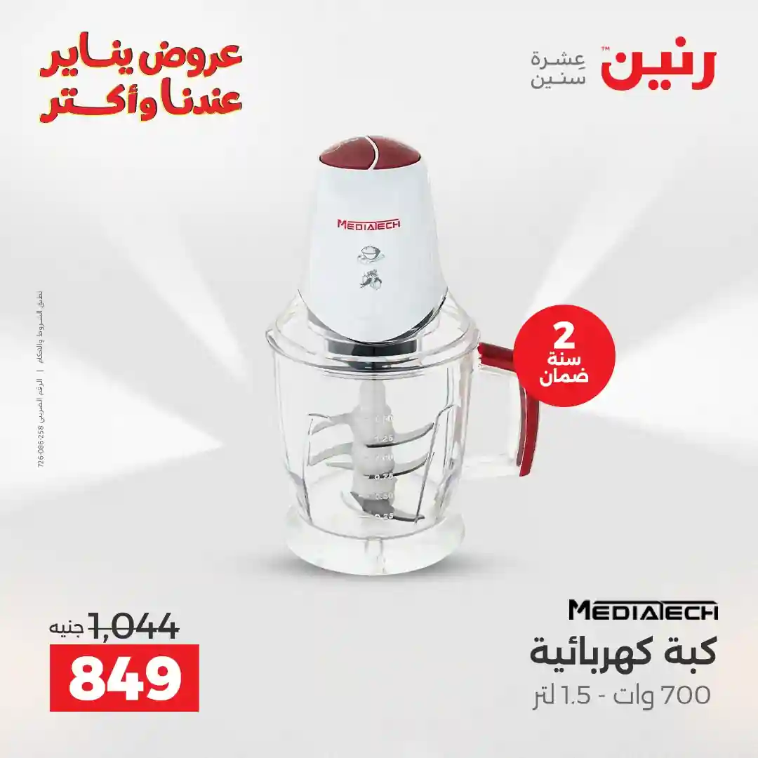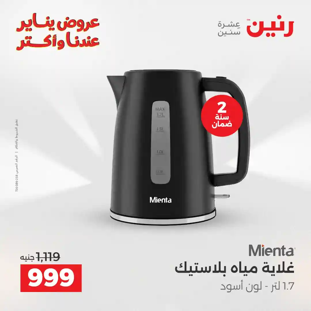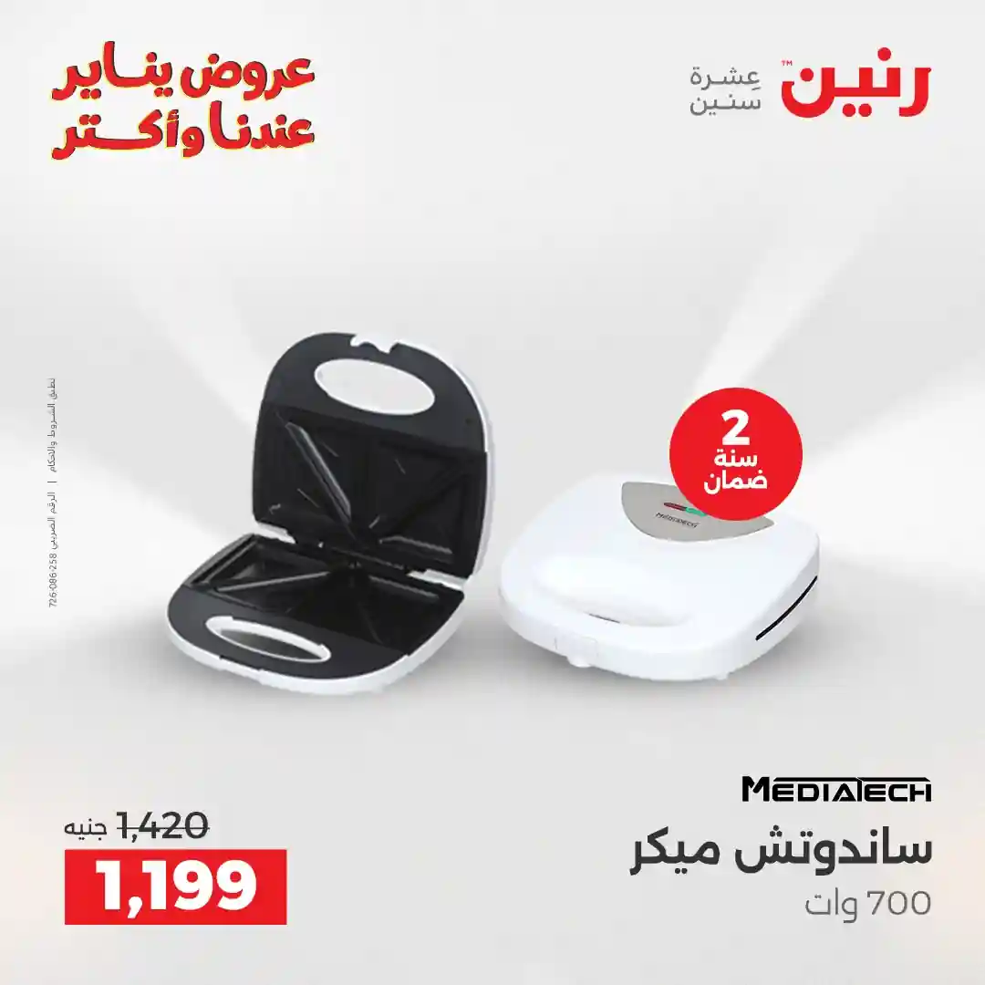 تسرى عروض رنين من يوم الخميس للسبت 8 – 9 – 10 يناير 2026 للاجهزة الكهربائية بجميع الفروع