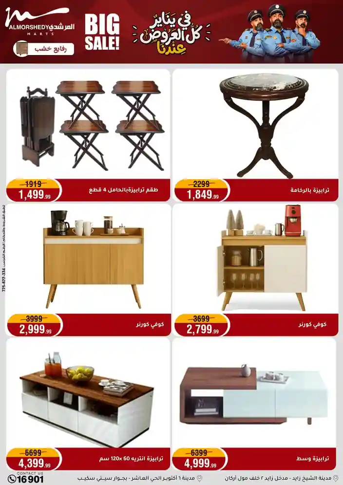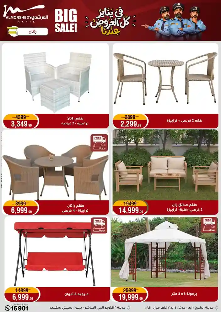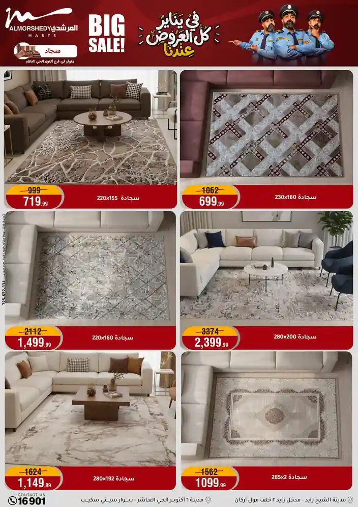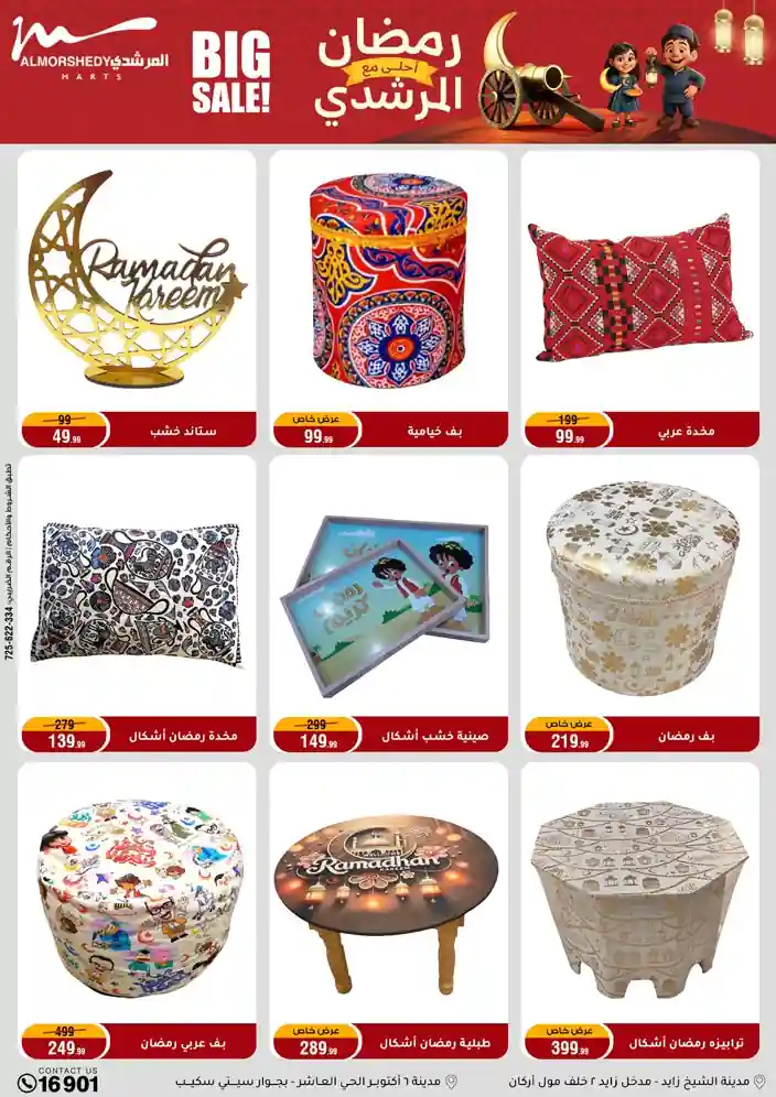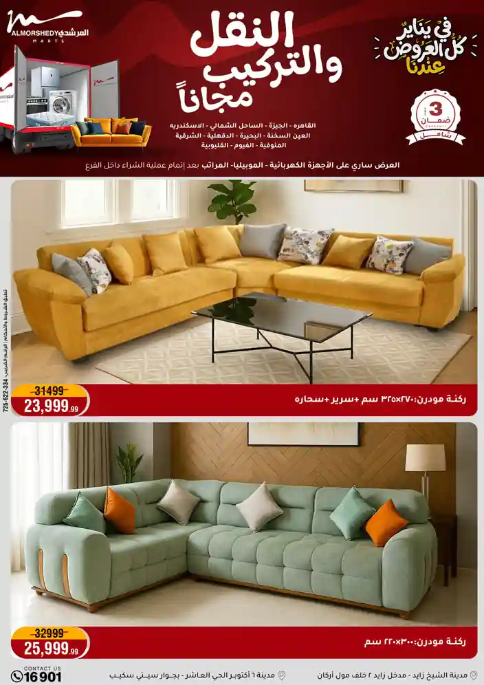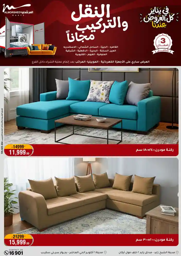 عروض جديدة من أسواق المرشدي  مع اكبر مهرجان للتخفيضات في مصر خصومات حتى 70%  وقسط براحتك بدون فوائد بأسعار العروض المخفضة على 12 شهر لحاملي بطاقة ائتمان CIB أو براحتك مع VALU بدون مقدم حتى 60 شهر أو بدون مقدم وبدون فوائد مع نظام هاتريك وكمان النقل مجاني للقاهرة والجيزة والقليوبية على قسم الأجهزة الكهربائية والموبيليا والمراتب ( تطبق شروط المكان ) خصومات على جميع الأقسام أدوات منزلية – اجهزة كهربائية – مفروشات – موبيليا – نجف – سجاد – مراتب – ملابس رجالي وحريمي وأطفالي ومستلزمات ولعب الأطفال وجاليري وأقسام تانية كتير استمتع بالتسوق في أسواق المرشدي مع أكتر من 12 قسم و أكثر من 10,000 منتج يعني كل اللي بتحلم بيه عند المرشدي هتلاقيه