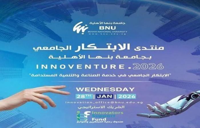 منتدى الابتكار الجامعي 2026.. برعاية د. أيمن عاشور وزير التعليم العالي والبحث العلمي، يشارك صندوق رعاية المبتكرين والنوابغ كشريك استراتيجي مع جامعة بنها الأهلية في تنظيم منتدى الابتكار الجامعي 2026، تحت عنوان: "الابتكار الجامعي في خدمة الصناعة والتنمية المستدامة"، والمقرر انعقاده يوم الأربعاء 28 يناير 2026. يمثل المنتدى منصة محورية لدعم الابتكار الجامعي وربط البحث العلمي بالصناعة والمجتمع، بما يتوافق مع رؤية مصر 2030.