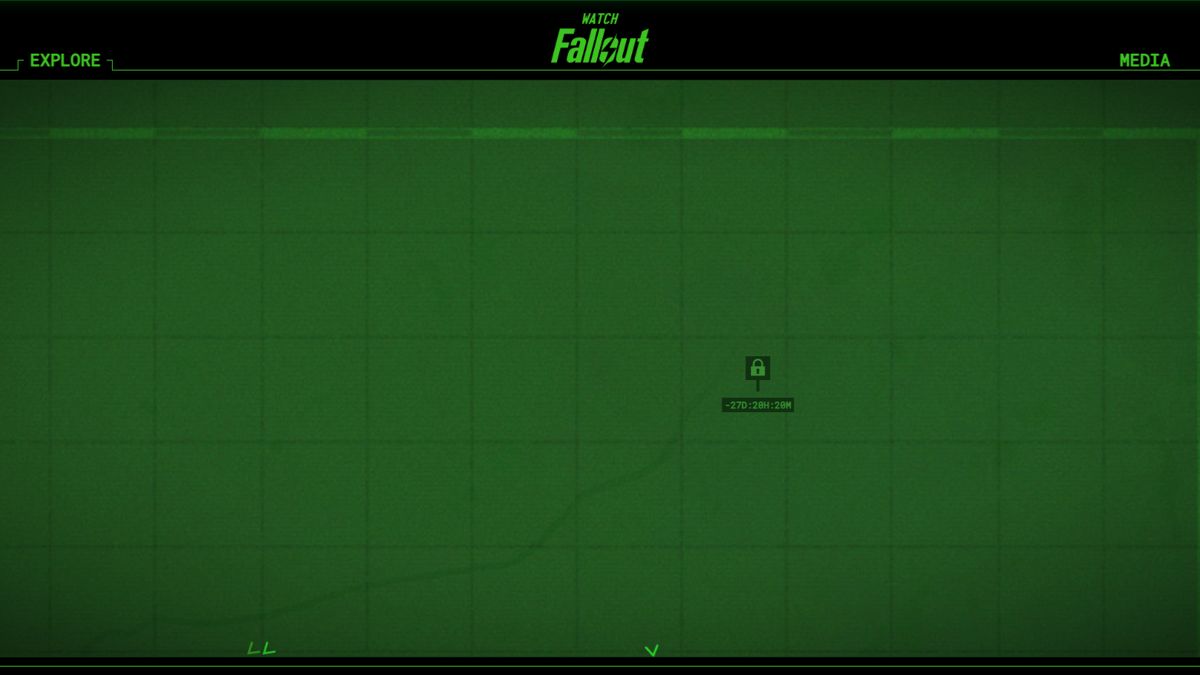 العد التنازلي المصمم على شكل خريطة مستوحاة من عالم Fallout، يحتوي على مواقع مألوفة للمعجبين مثل Vault 33 الذي خرجت منه شخصية "لوسي" لأول مرة إلى الأرض القاحلة، ومنطاد Caswennan المقر المرتفع لجماعة Brotherhood of Steel. ويقع المؤقت نفسه في أعلى يمين الخريطة، ويشير إلى تاريخ 4 فبراير الذي يأتي بالتزامن مع نهاية الموسم الثاني من المسلسل.