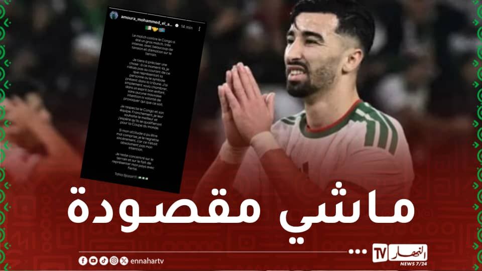 ونشر عمورة، اليوم الأربعاء، رسالة عبر حسابه الرسمي على “انستغرام”، أكد في بدايتها بأن مبارتهم ضد منتخب الكونغفو الديمقراطية، شهدت ضغط، وحماس كبيرين.