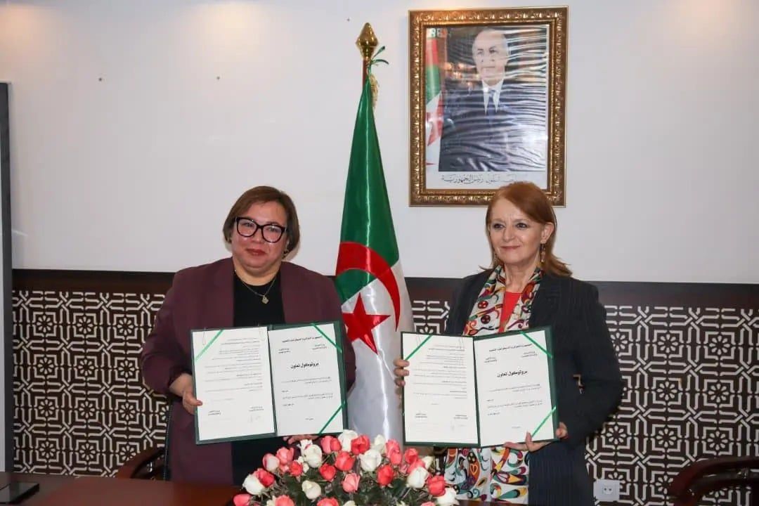 أشرفت وزيرة السياحة والصناعة التقليدية. مداحي حورية ووزيرة التكوين والتعليم المهنيين، أرحاب نسيمة، على مراسم التوقيع على بروتوكول تعاون لتكوين المرشدين السياحيين غير المعتمدين.