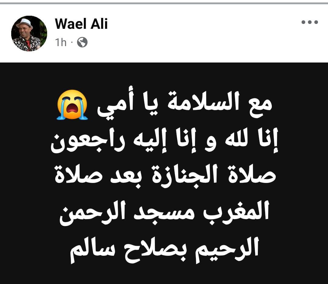 وفاة والدة الفنان وائل على وصلاة الجنازة اليوم
